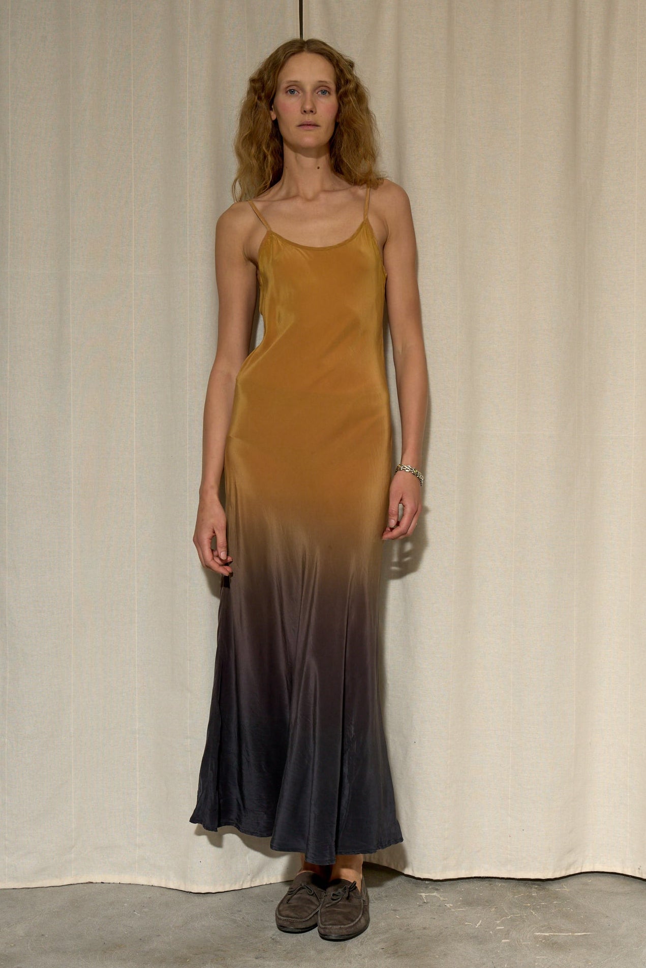 Gold ombre 100% silk bias cut dress, in very good condition.