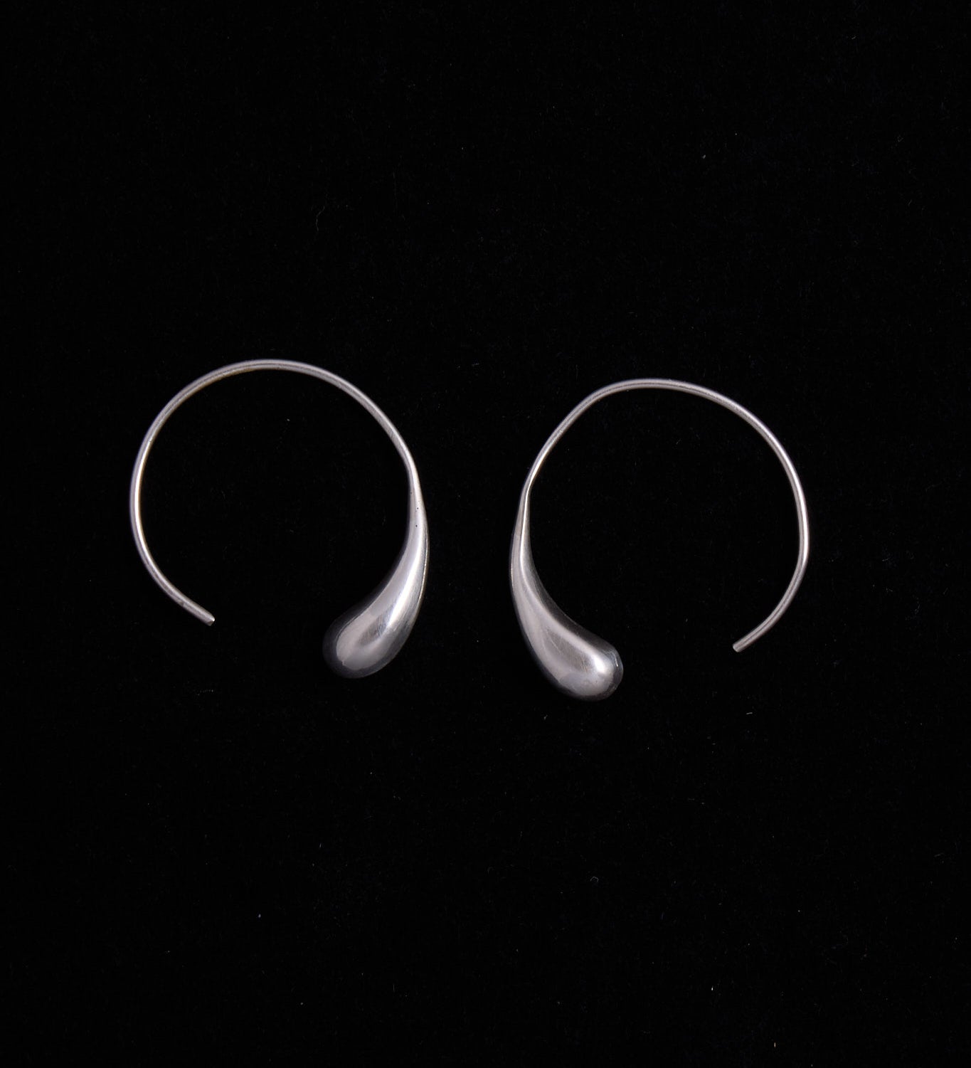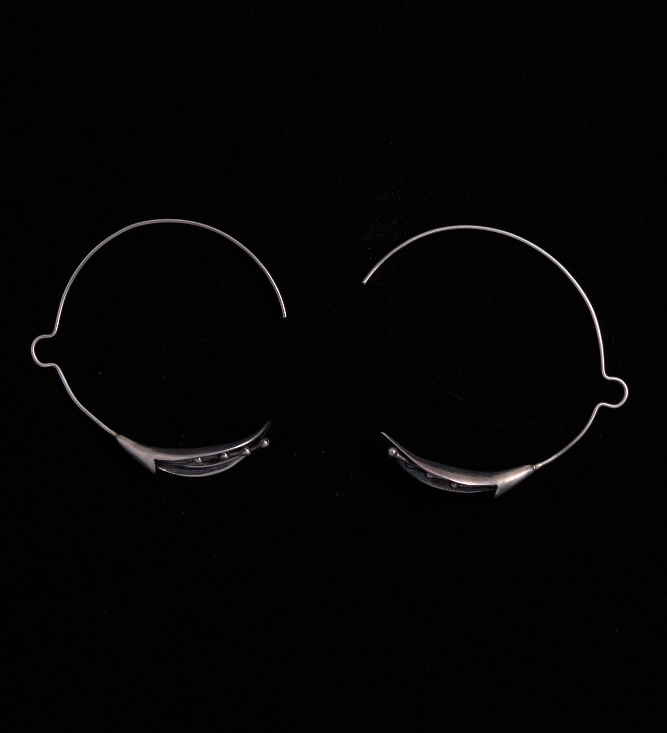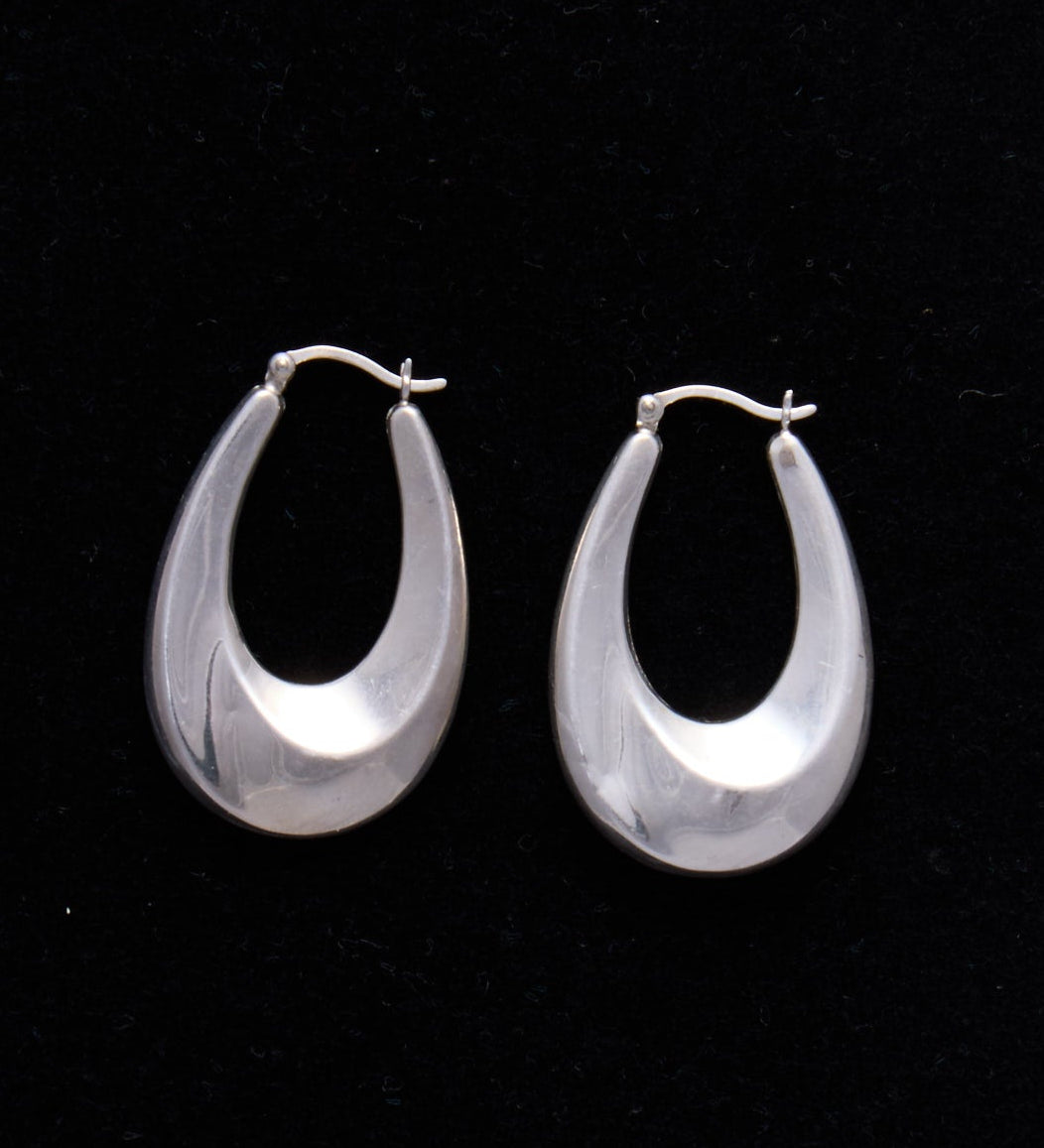 Vintage Sterling Silver Open Hoop Lily Flower Earrings