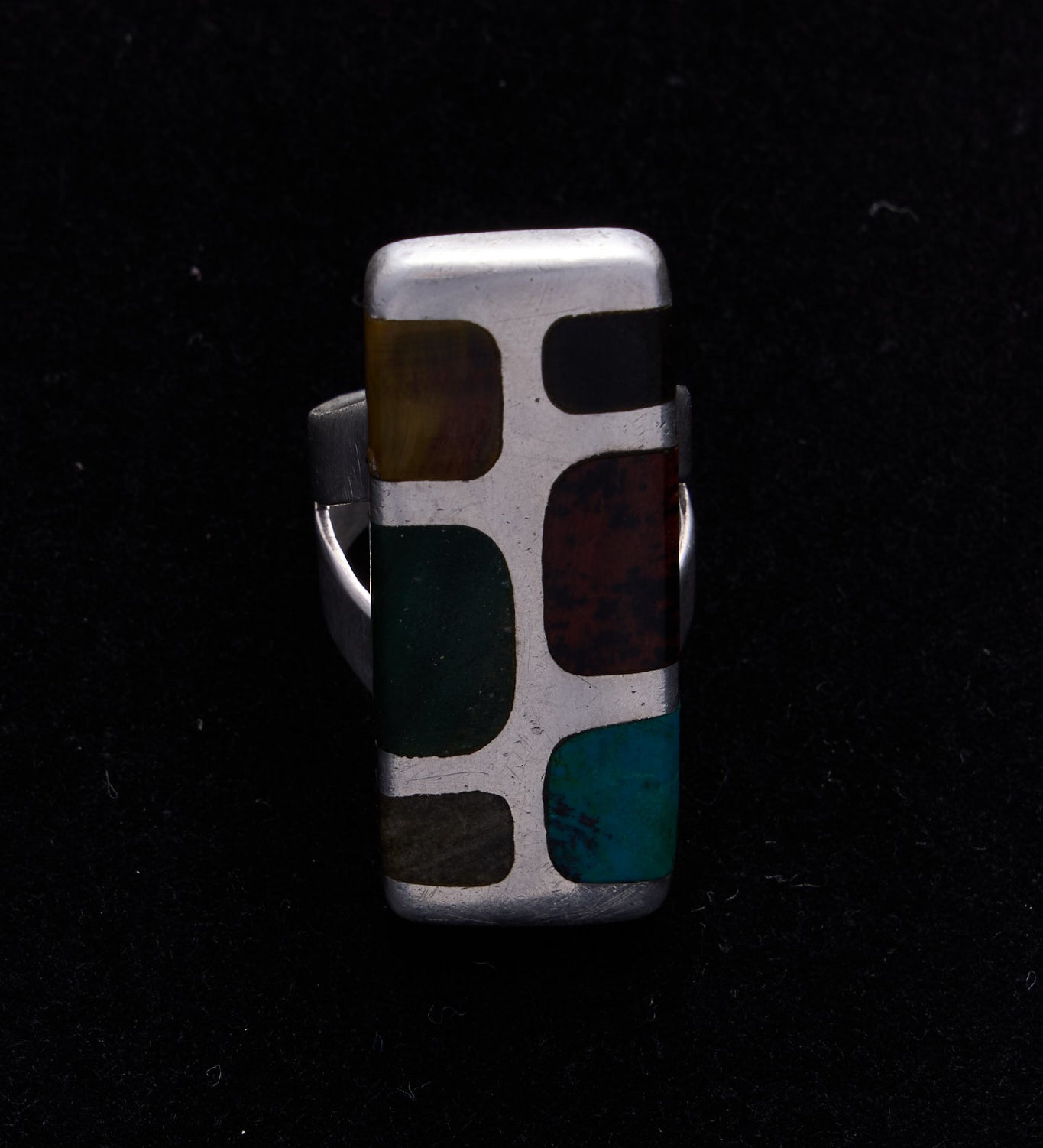 Vintage Sterling Silver Stone Heart Shaped Stud Earrings