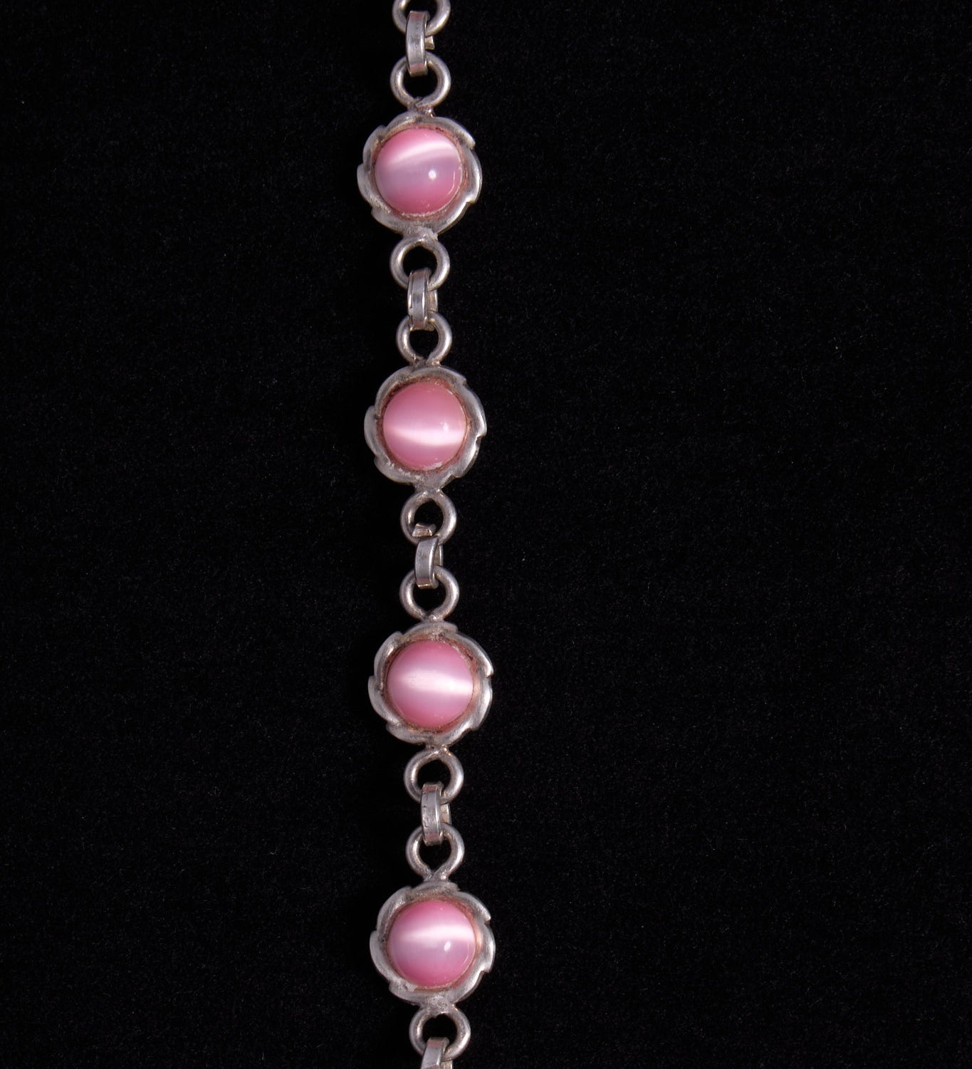 Sterling Silver Pink Gemstone Cuff Bracelet