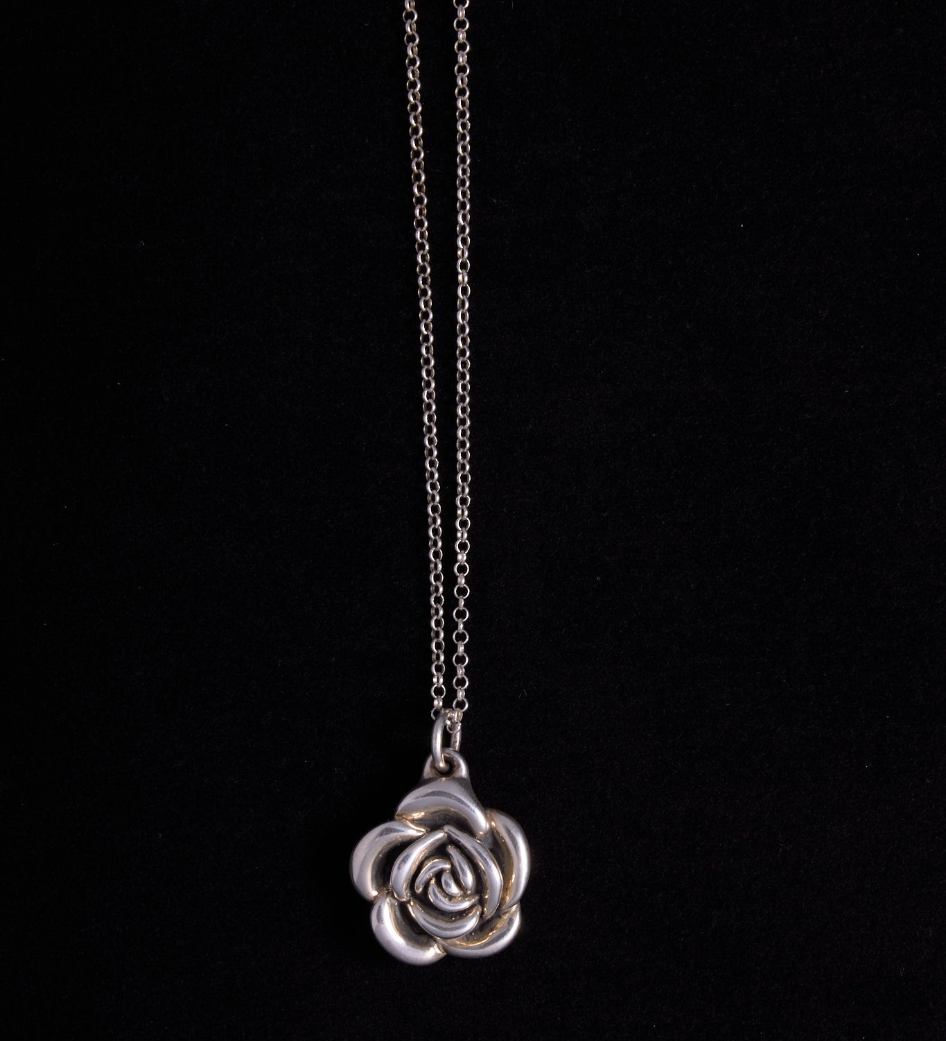 Vintage Sterling Silver Necklace with Puffed Rose Pendant