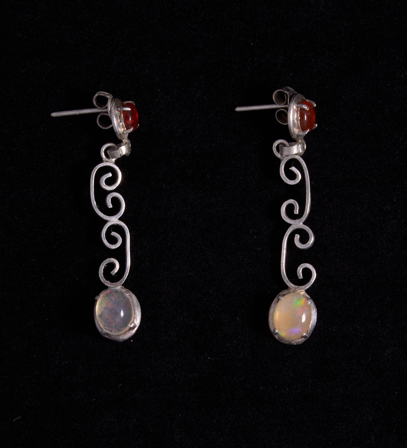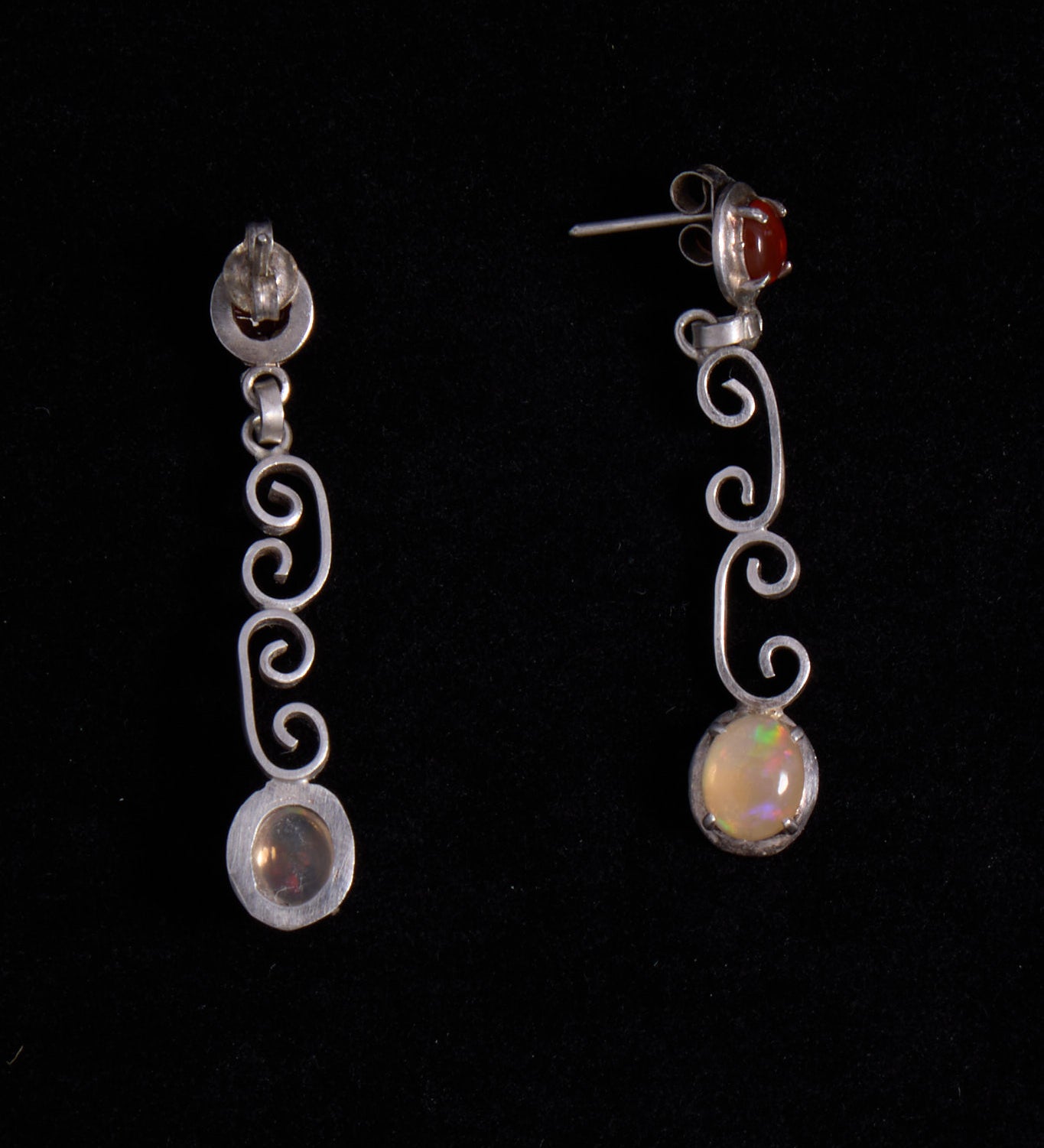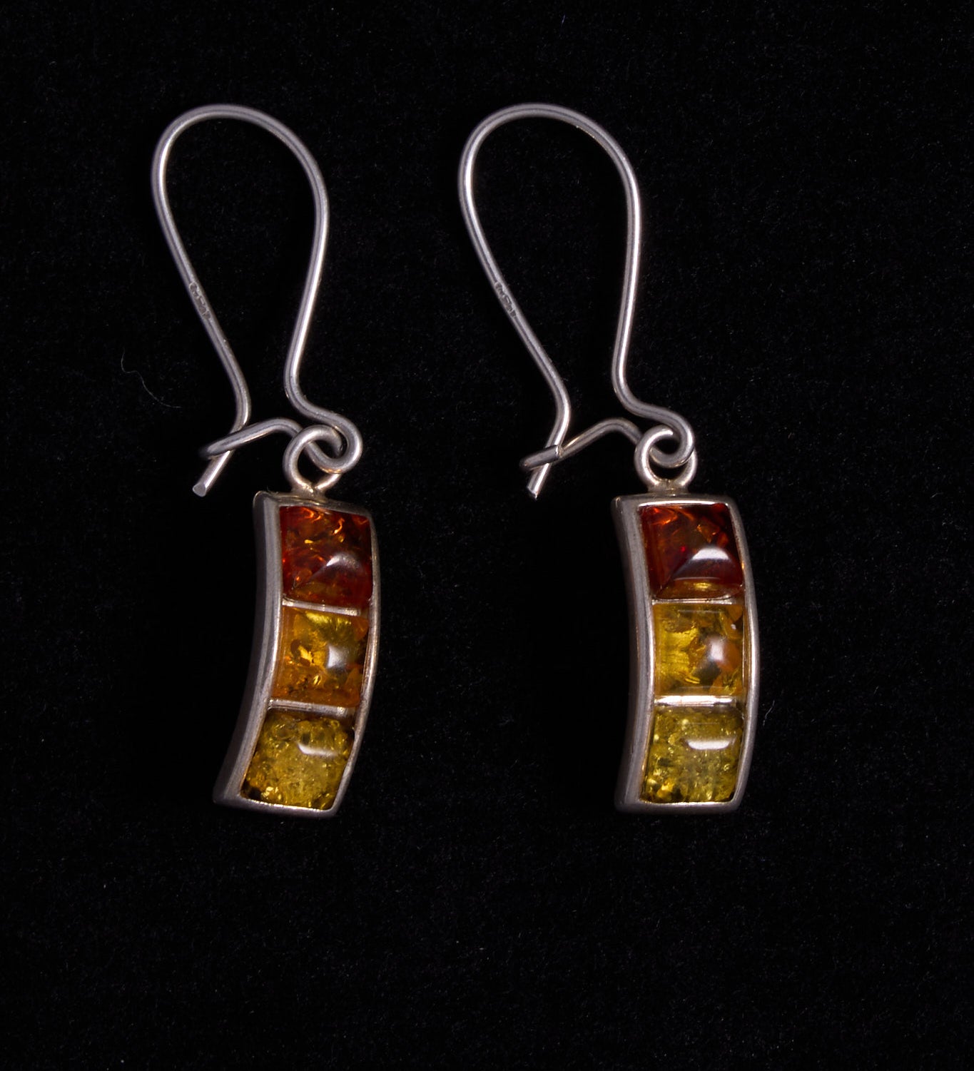 Sterling Silver Drop Earrings with Amber and Moonstone