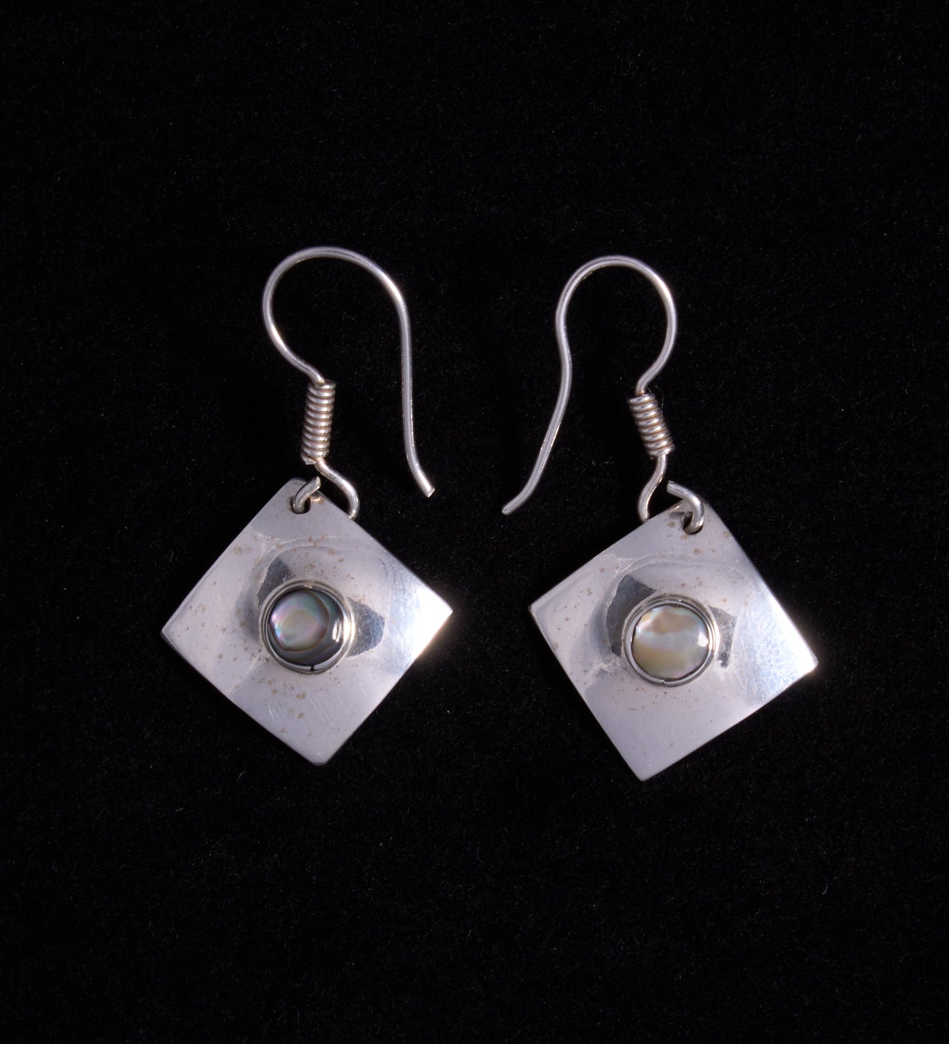 Sterling Silver Diamond Shaped Earrings with Moonstone
