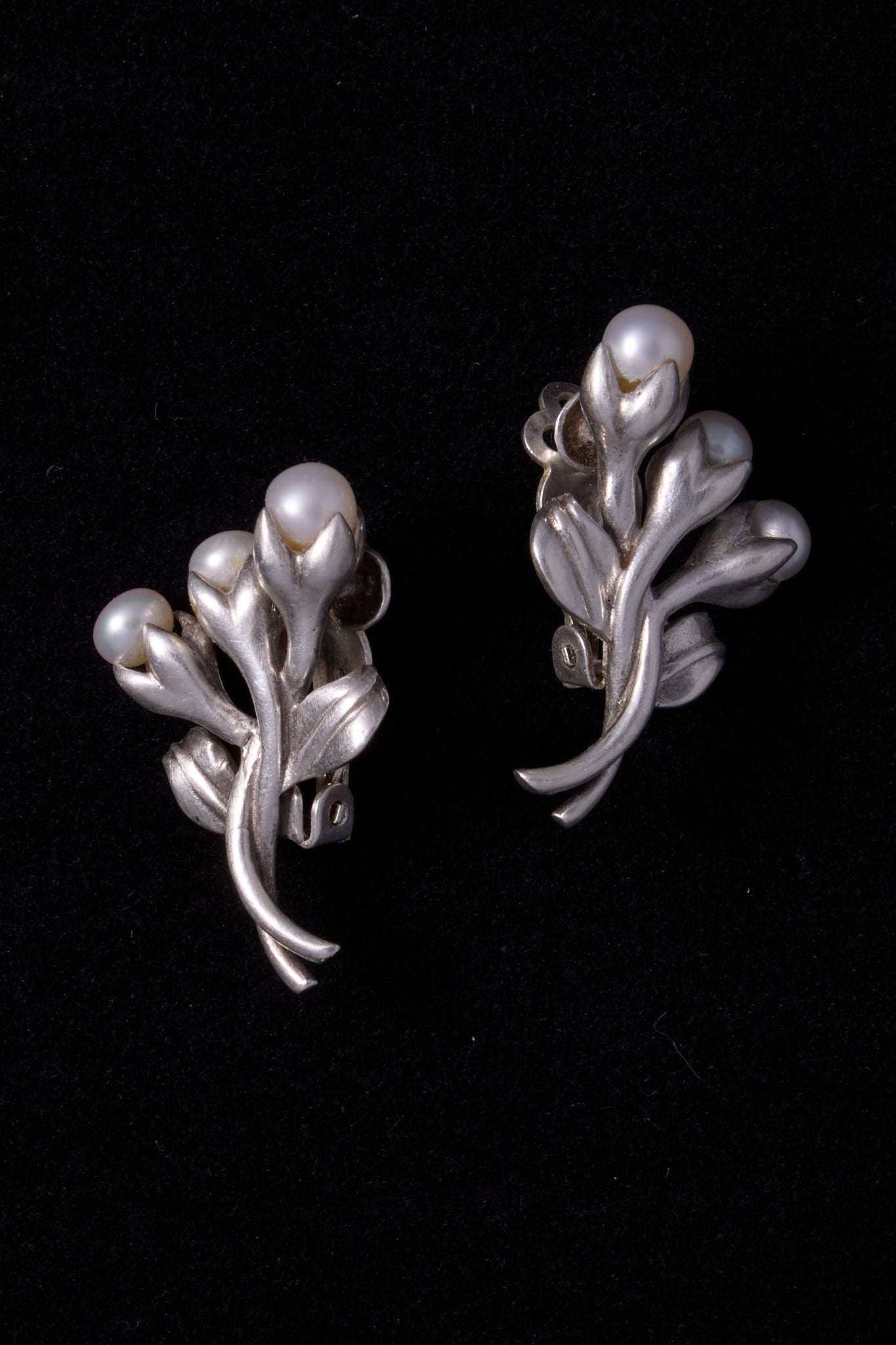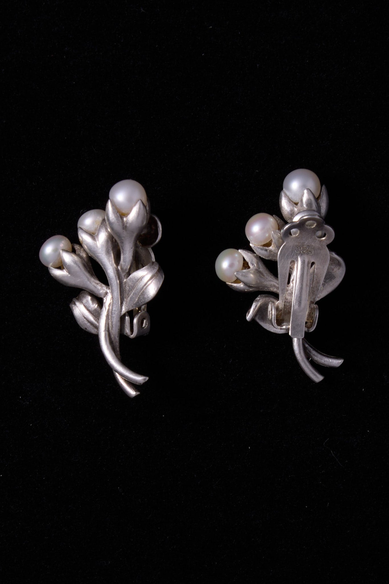 Sterling Silver Flower Shaped Clip-on Earrings with Pearls