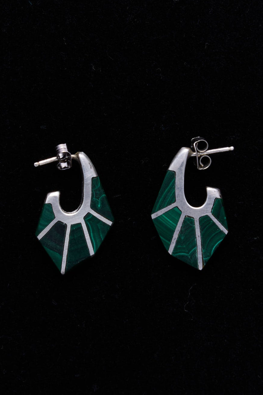 Material: Tested silver (no visible hallmark), Green malachite-style stone inlay