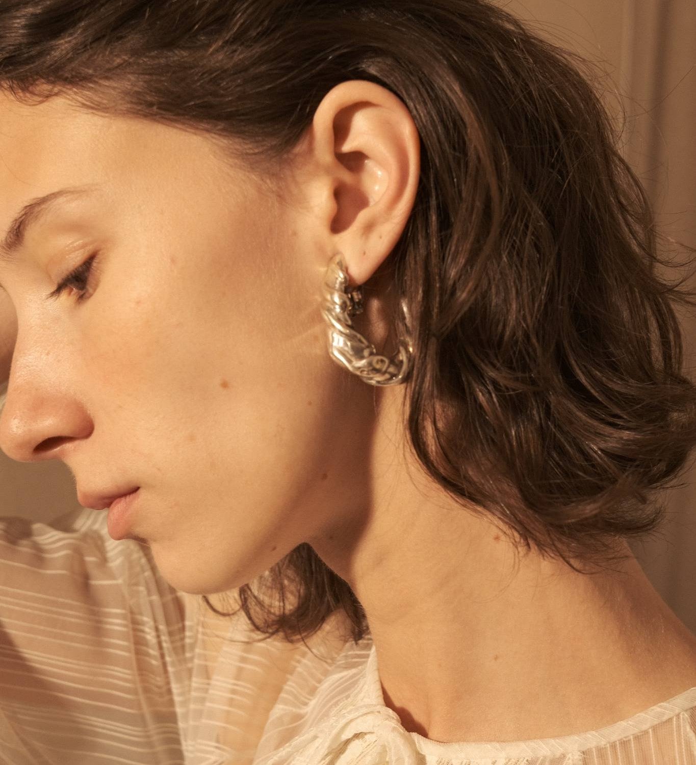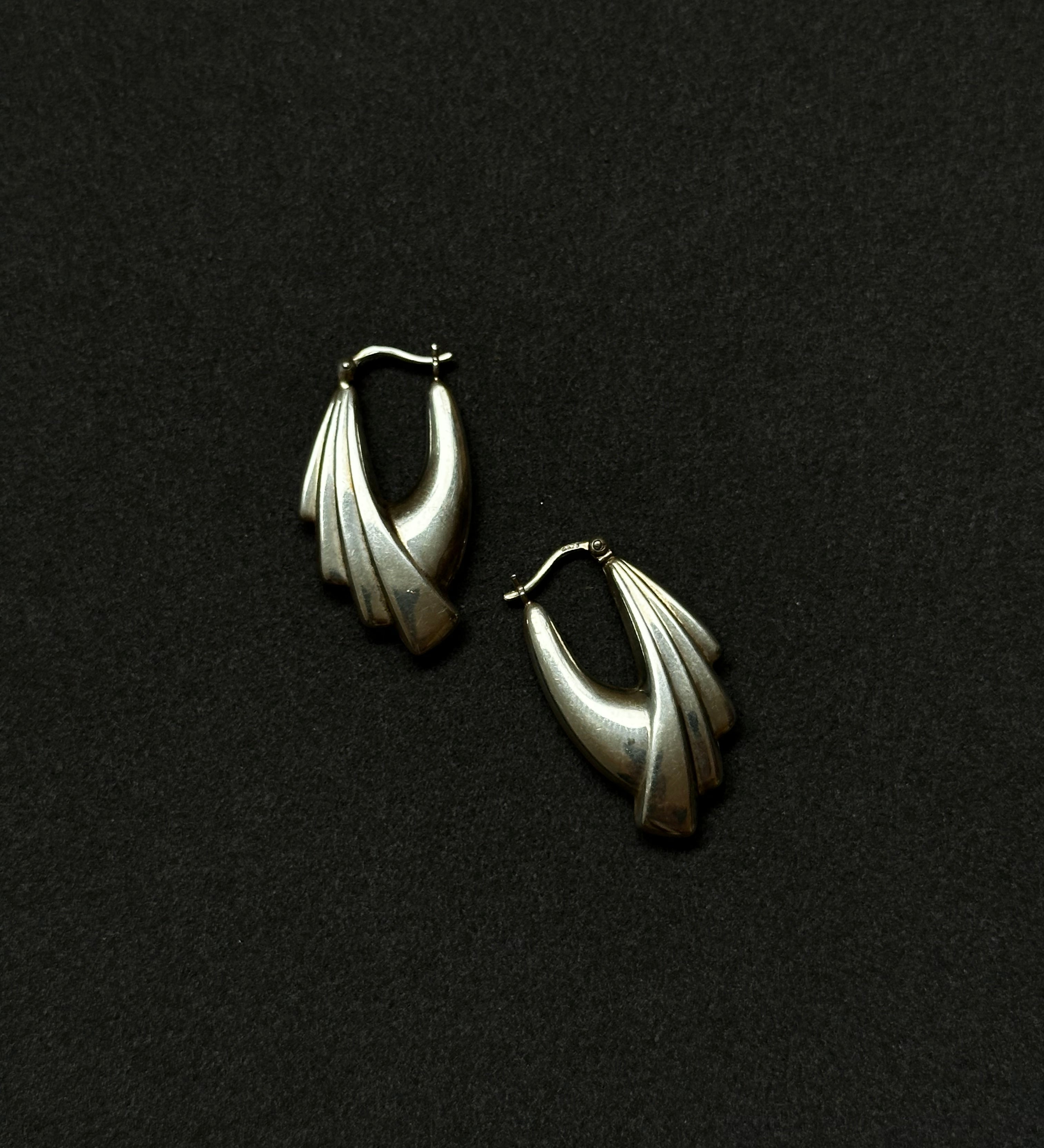 Vintage Sterling Silver Large Twisted Clip on Earrings