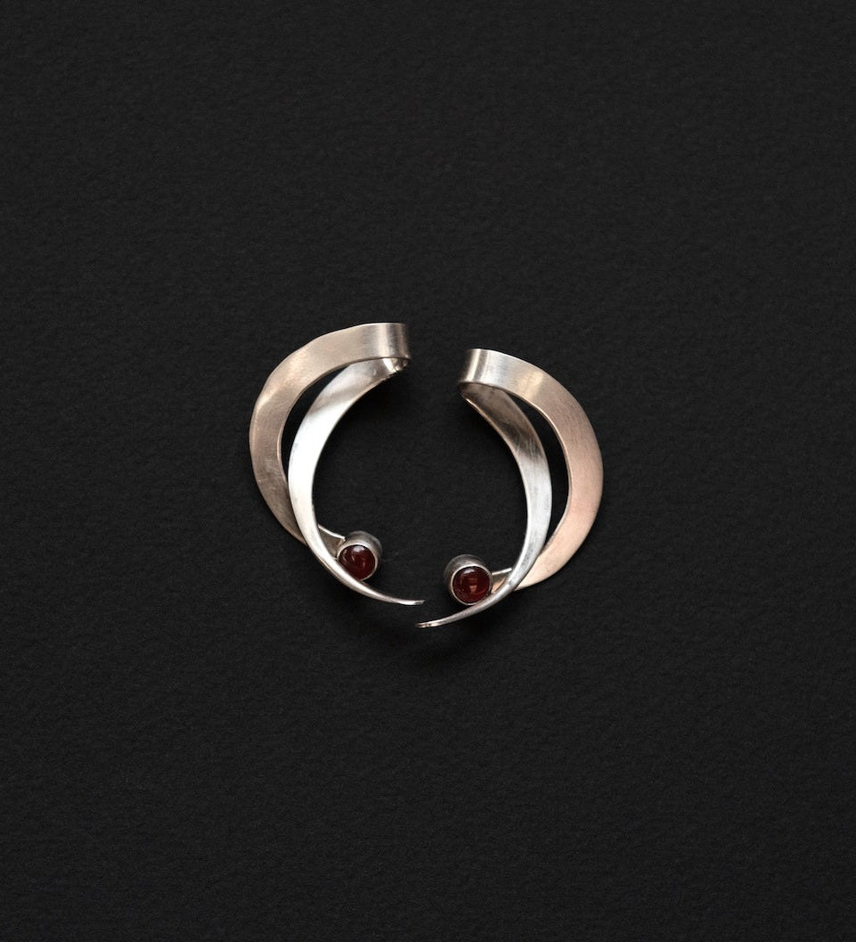 Vintage Sterling Silver Sculptural Crescent Earrings with Garnet