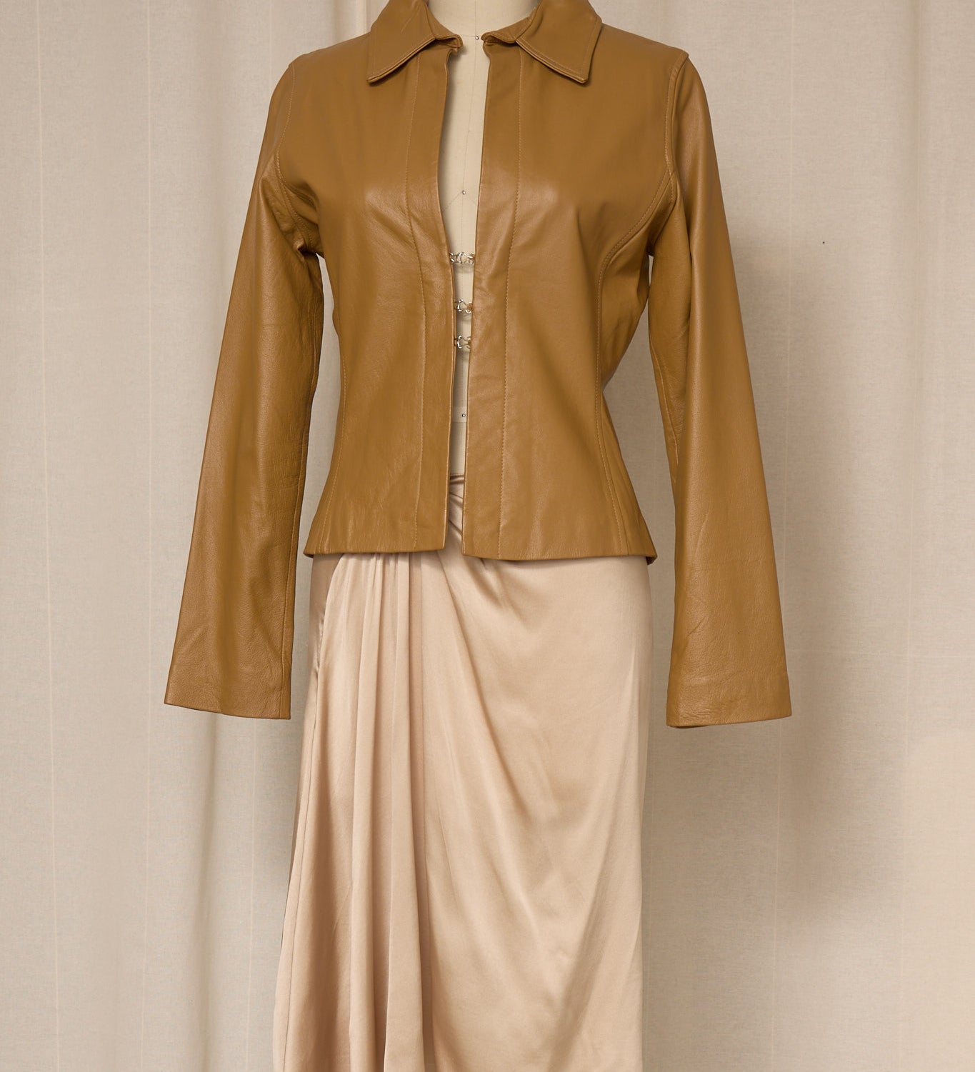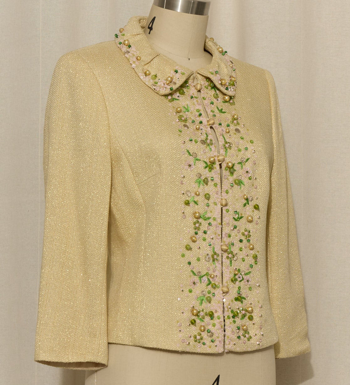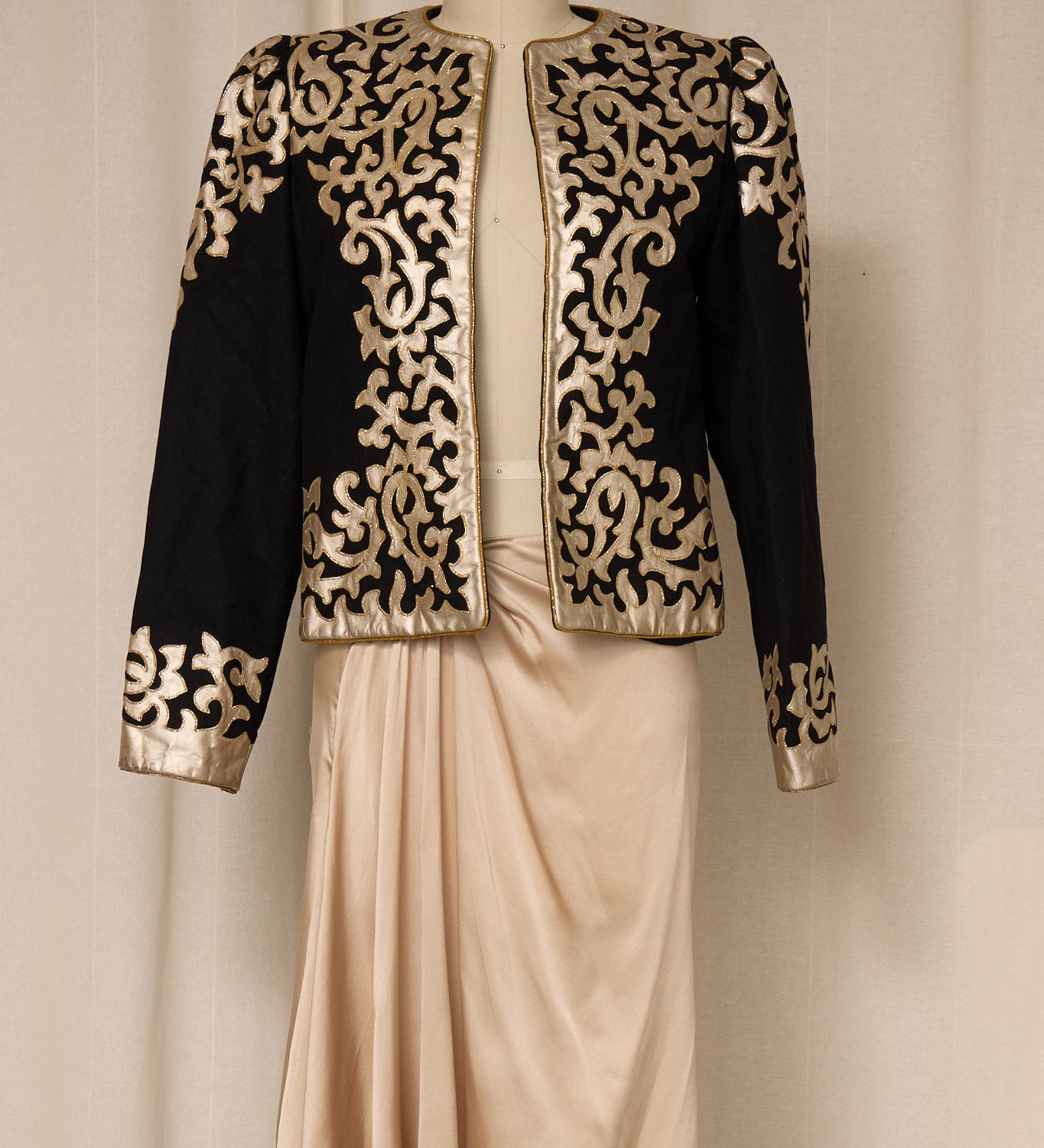 Oscar De La Renta Silver Gold Leather Embroideried Jacket