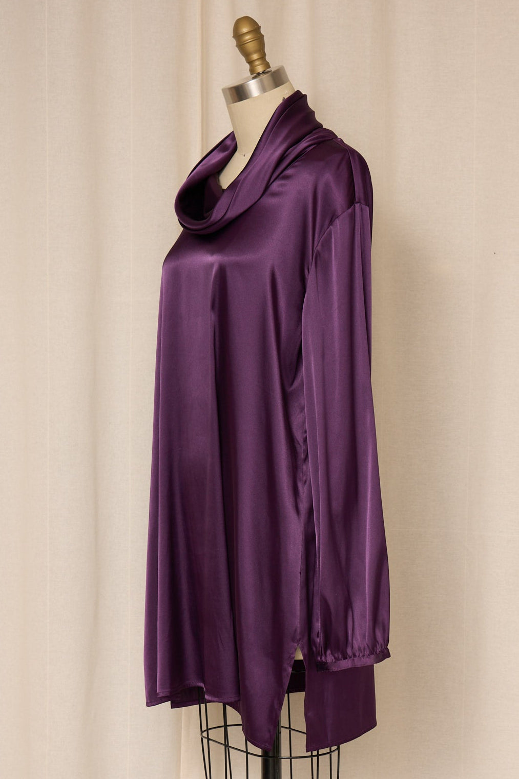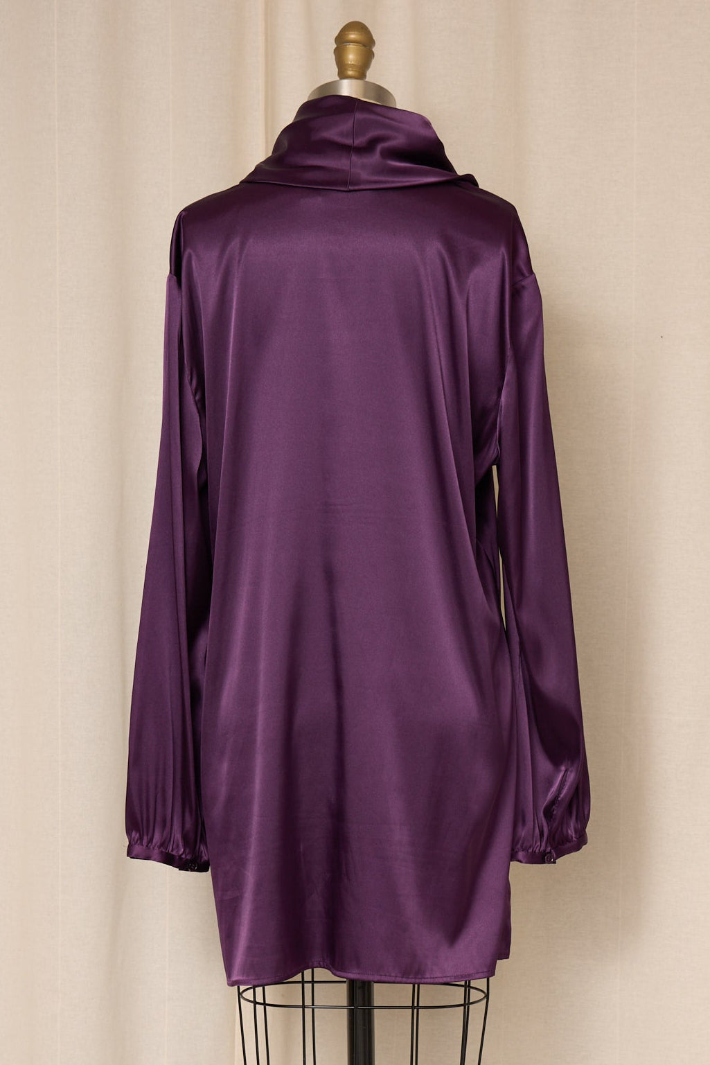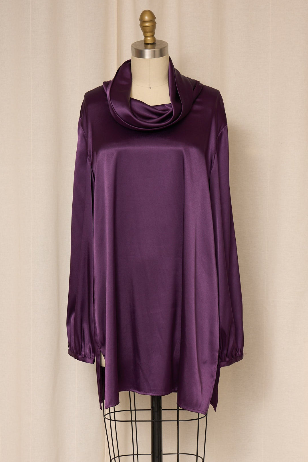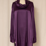 Vintage purple draped satin blouse with a relaxed longline silhouette and soft cowl neckline. Fluid satin finish with an elegant drape and timeless minimalist feel. Perfect vintage condition.