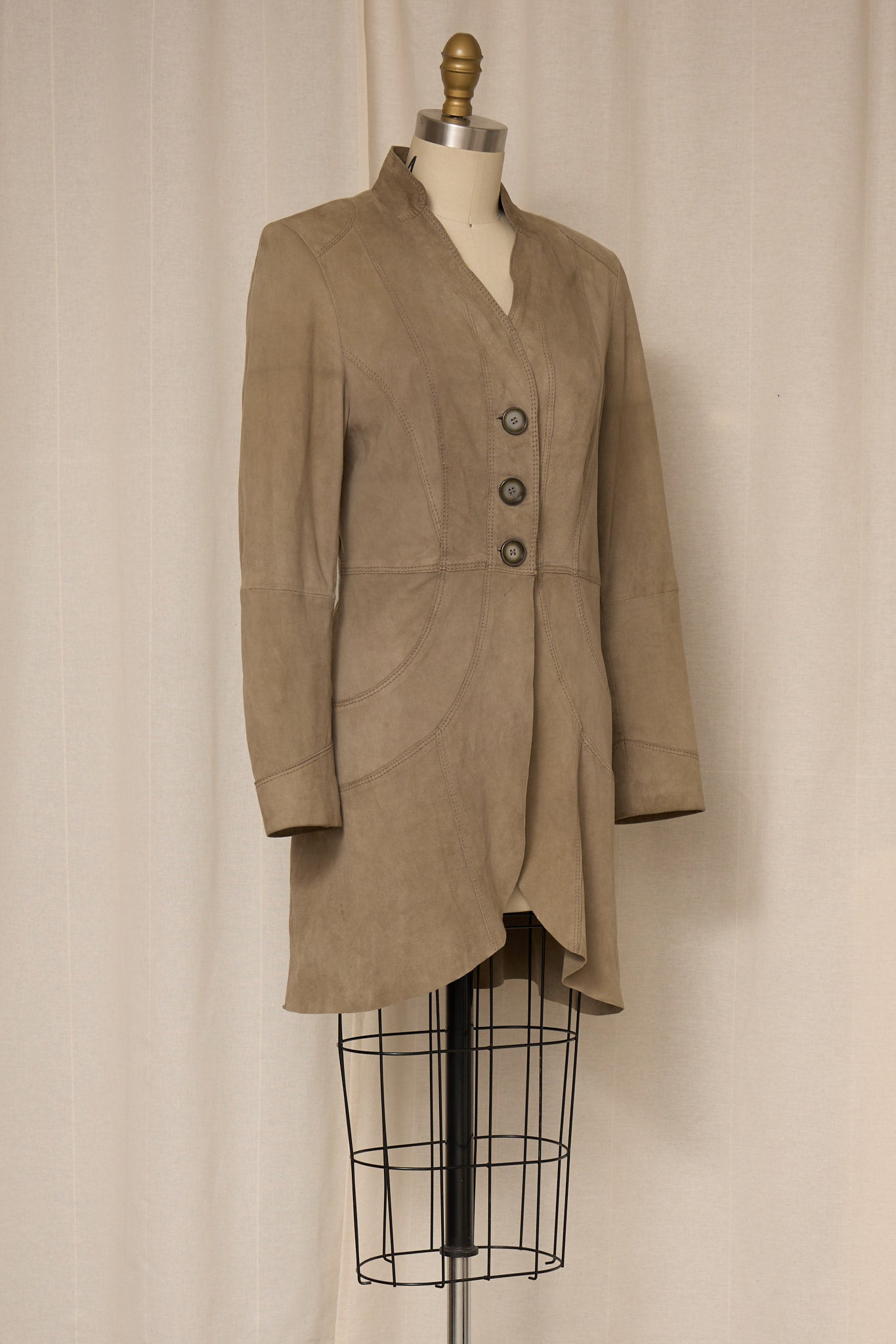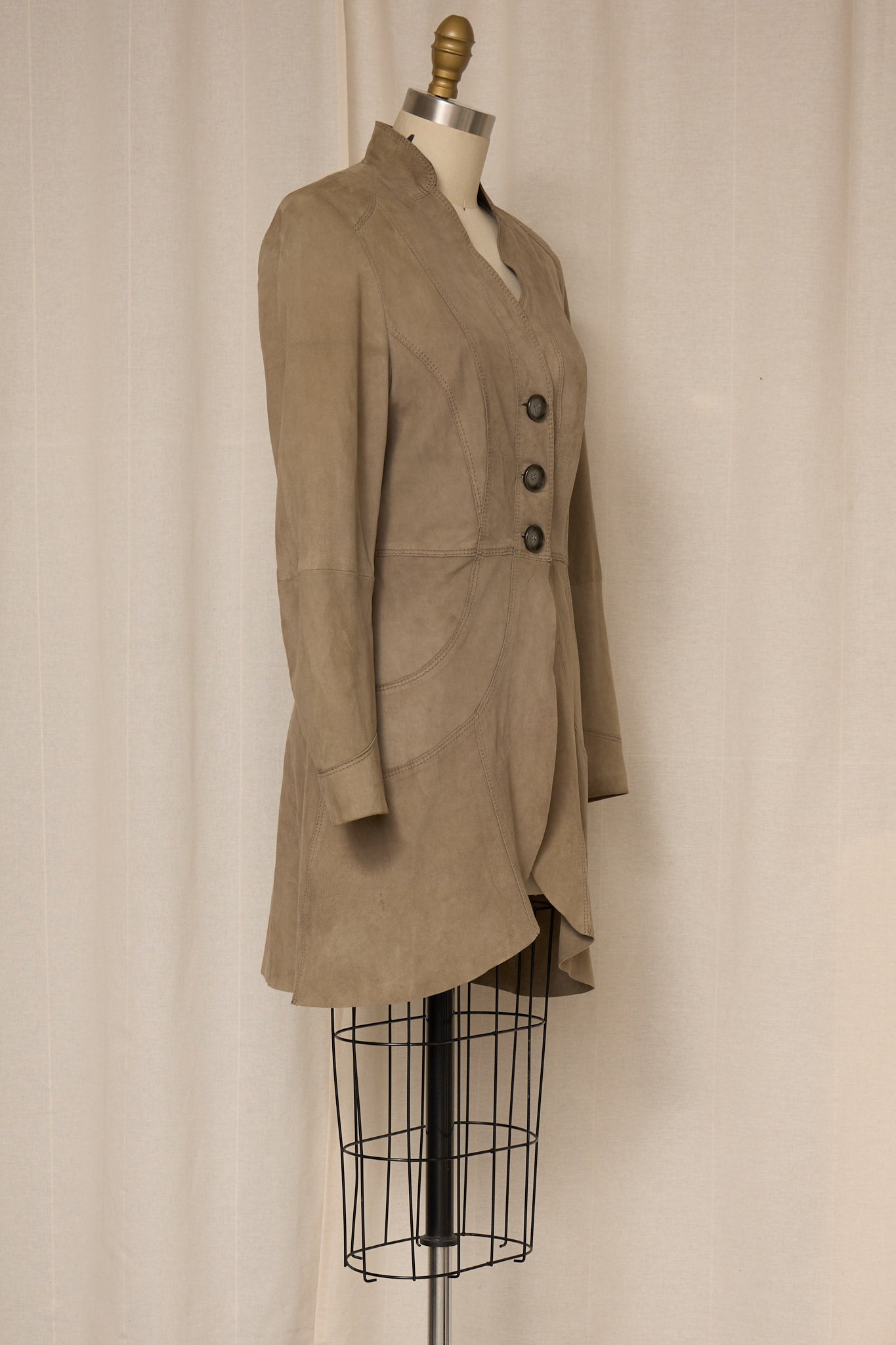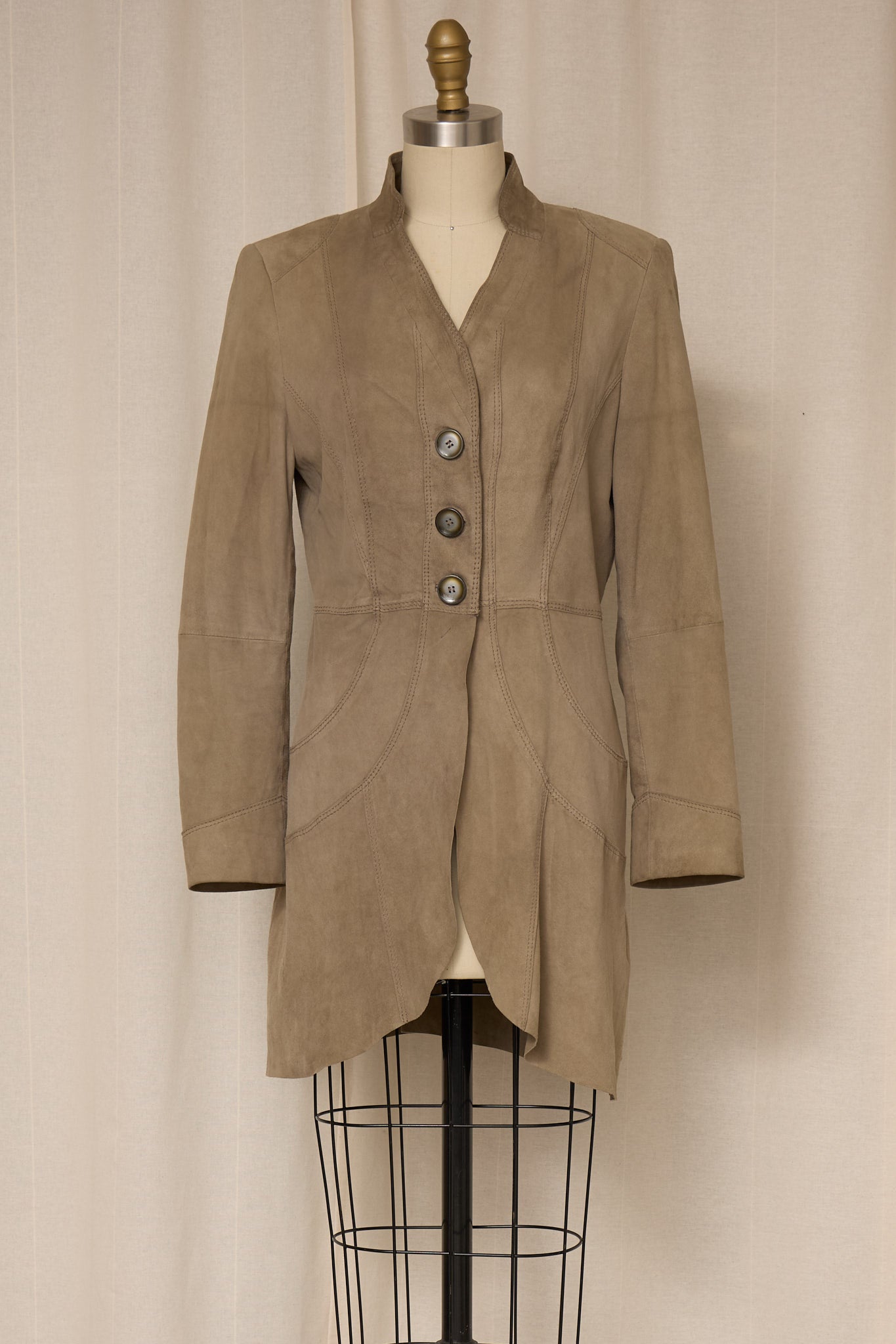 Vintage taupe suede jacket with sculptural seam detailing.