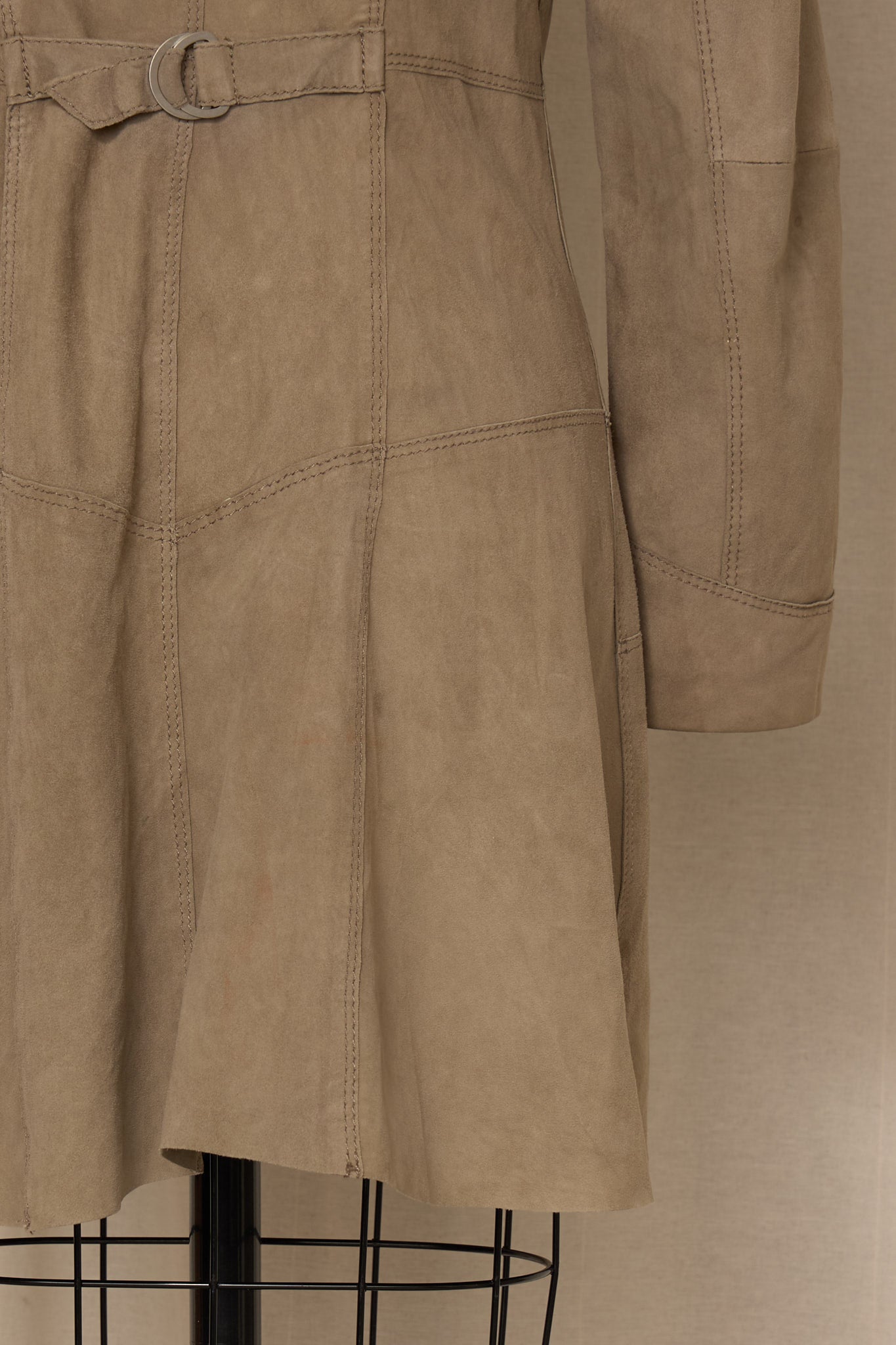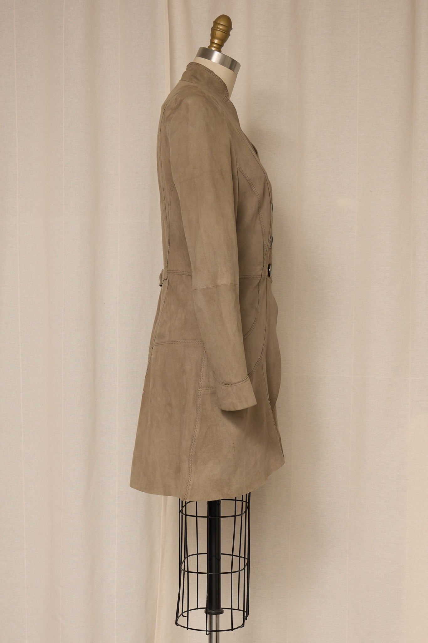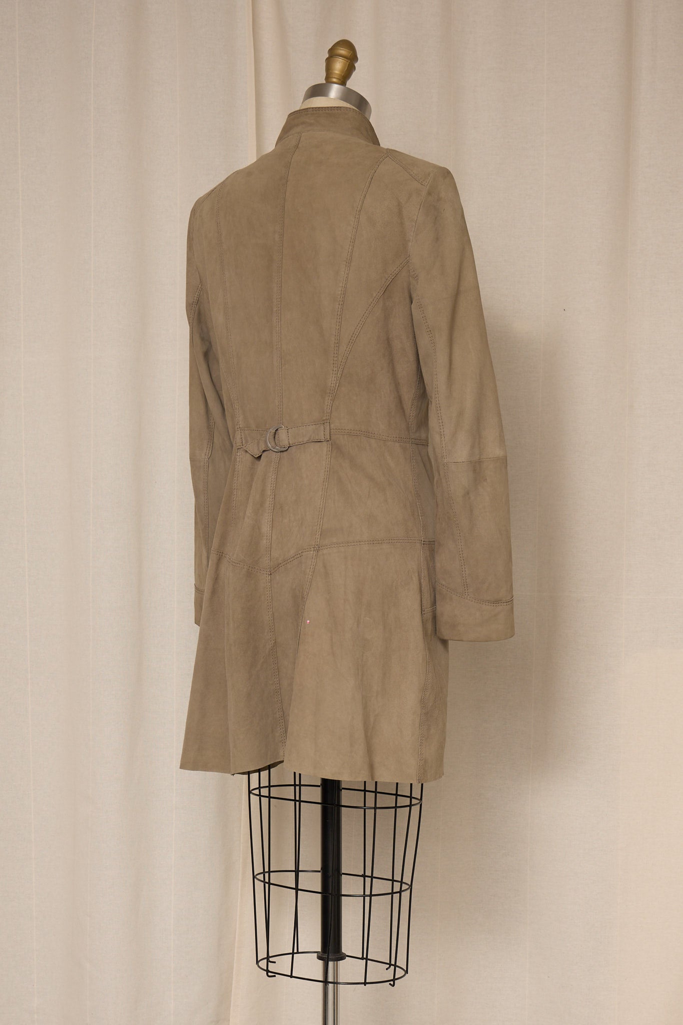 Vintage taupe suede jacket with sculptural seam detailing.