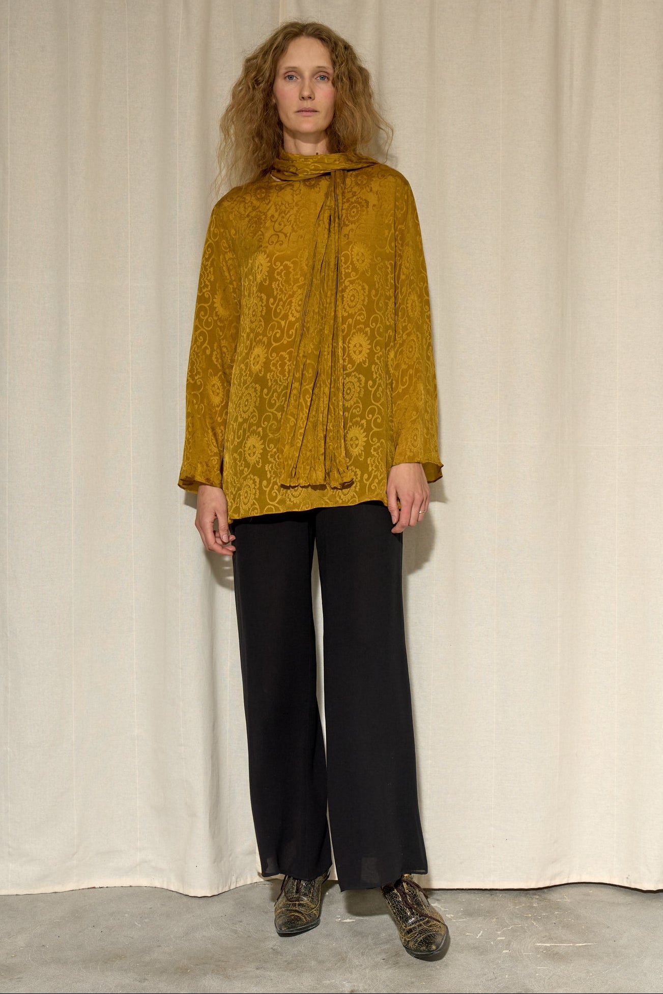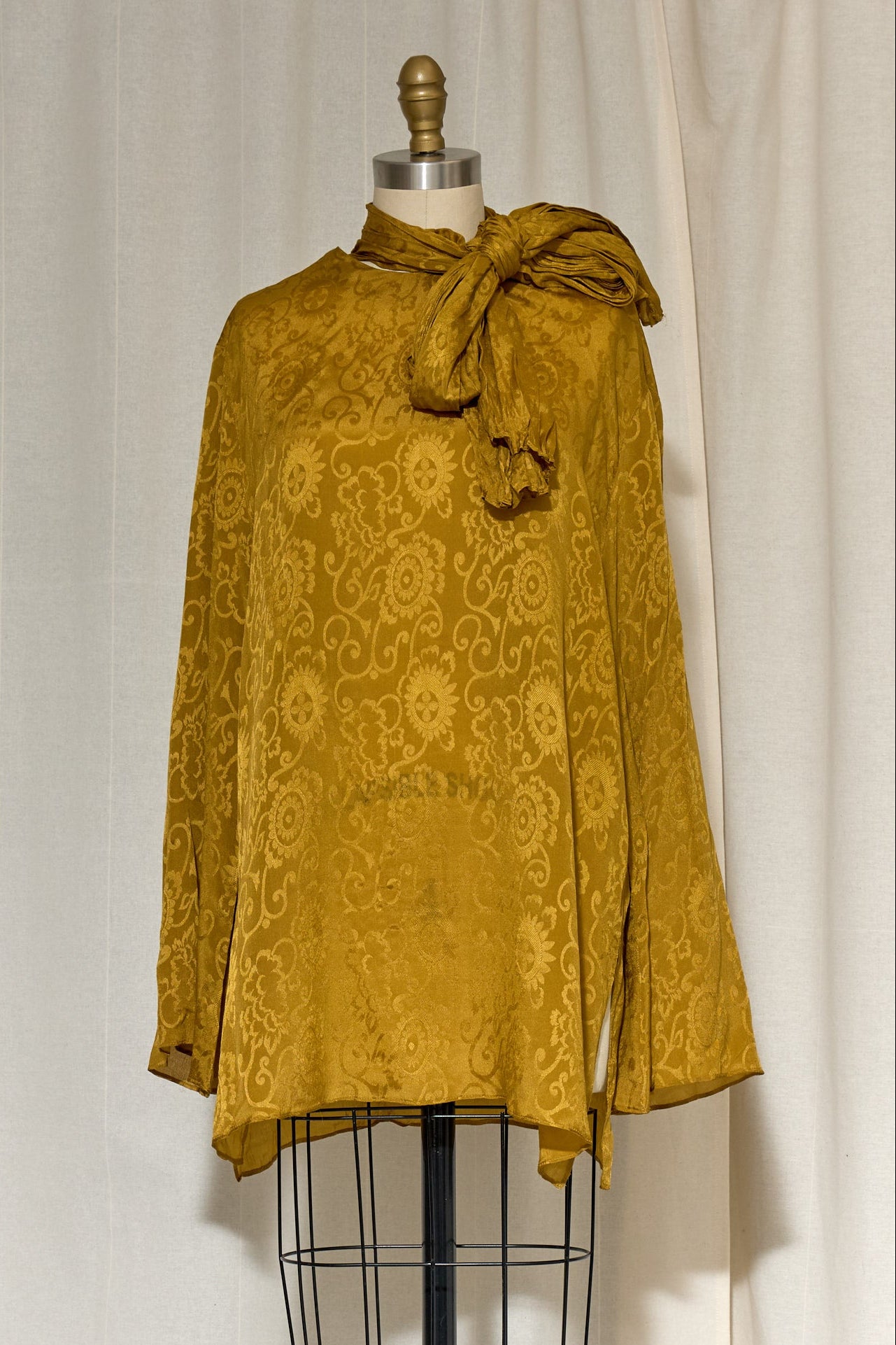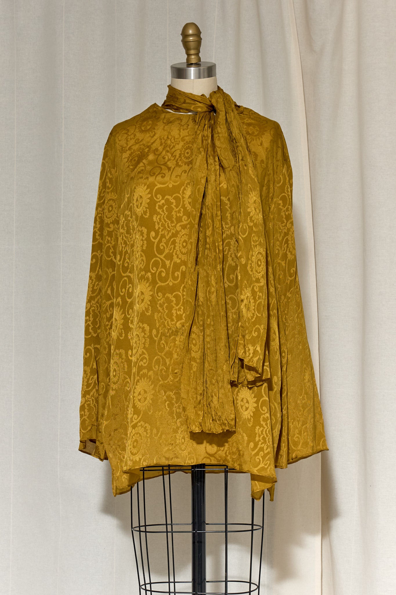 100% silk blouse with attached scarf, minor pulls or loose threads