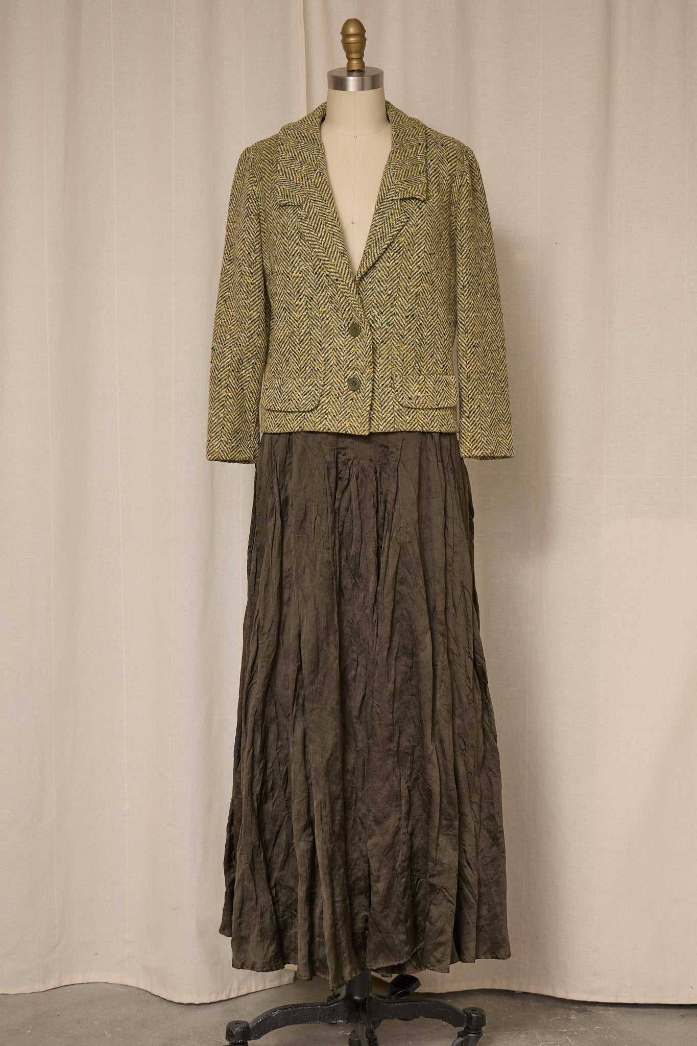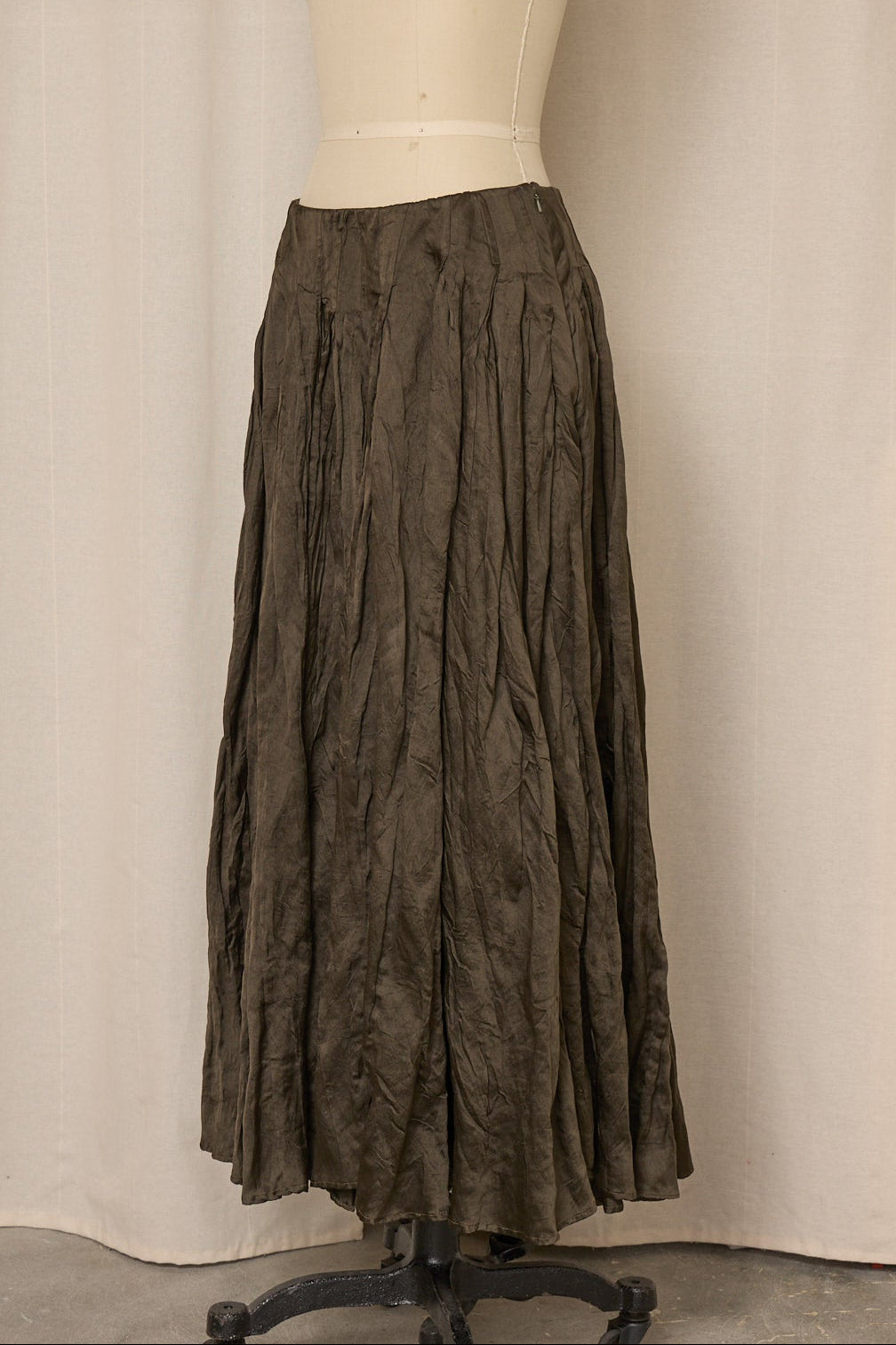 Vintage Ralph Lauren skirt with a fluid, softly crinkled silhouette and elegant movement. Mid-rise waist with a relaxed drape and subtle texture throughout. Timeless and understated, in very good vintage condition.