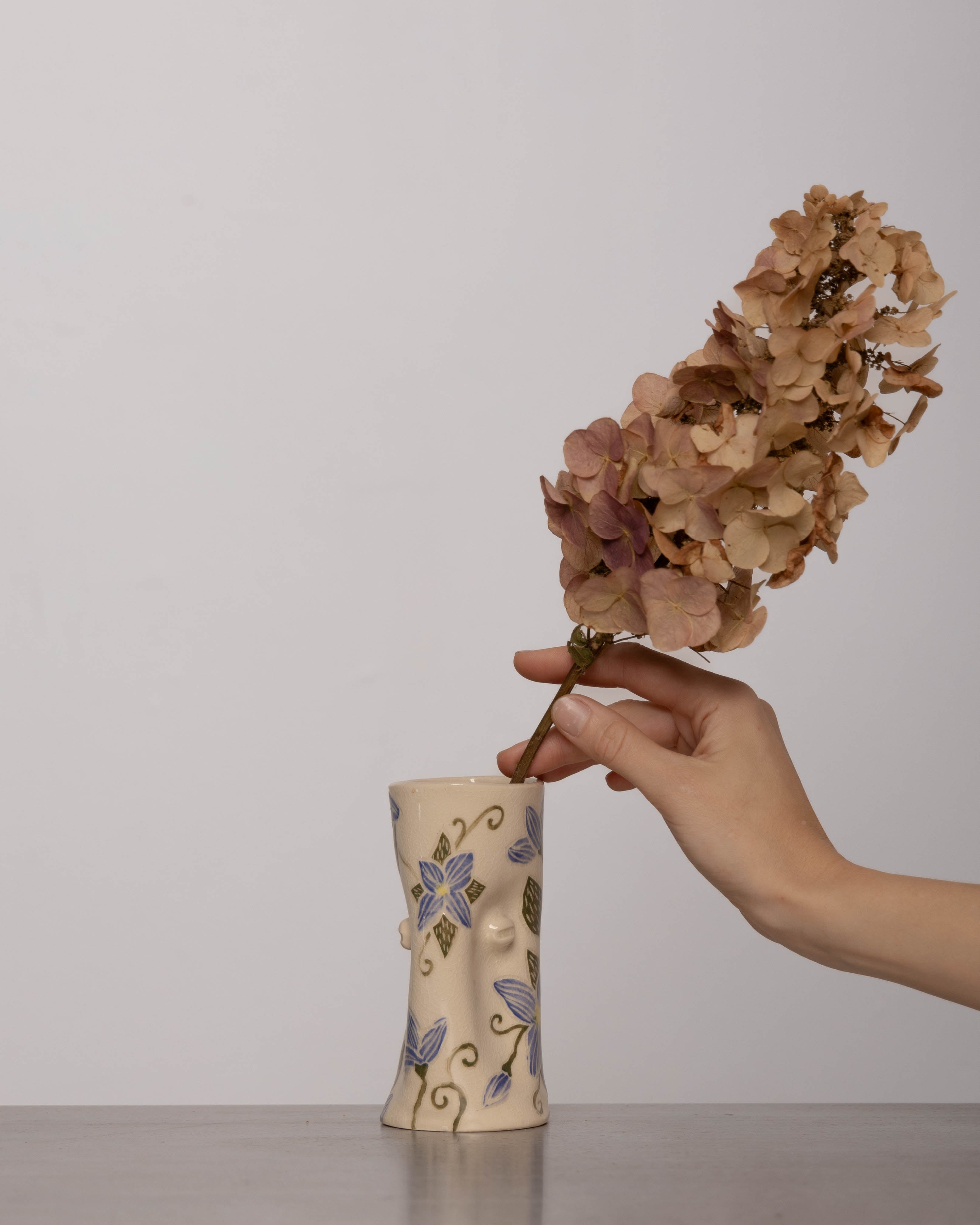 Discover the KKS Small Vase – a handmade 5.5-inch tall, 3.5-inch wide ceramic vase, featuring organic artistry and minimalist elegance.