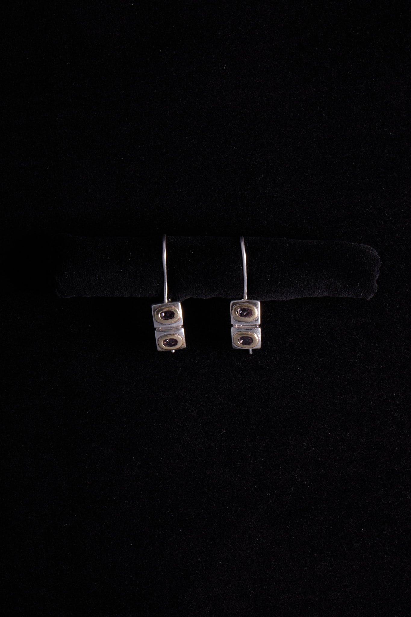 Sterling Silver 2 Square Earrings with Amethyst Stones
