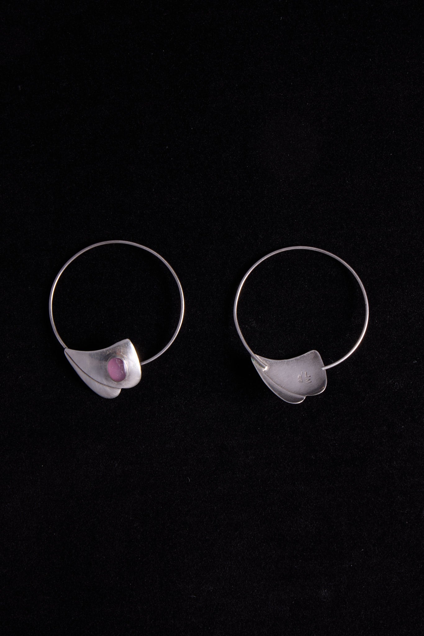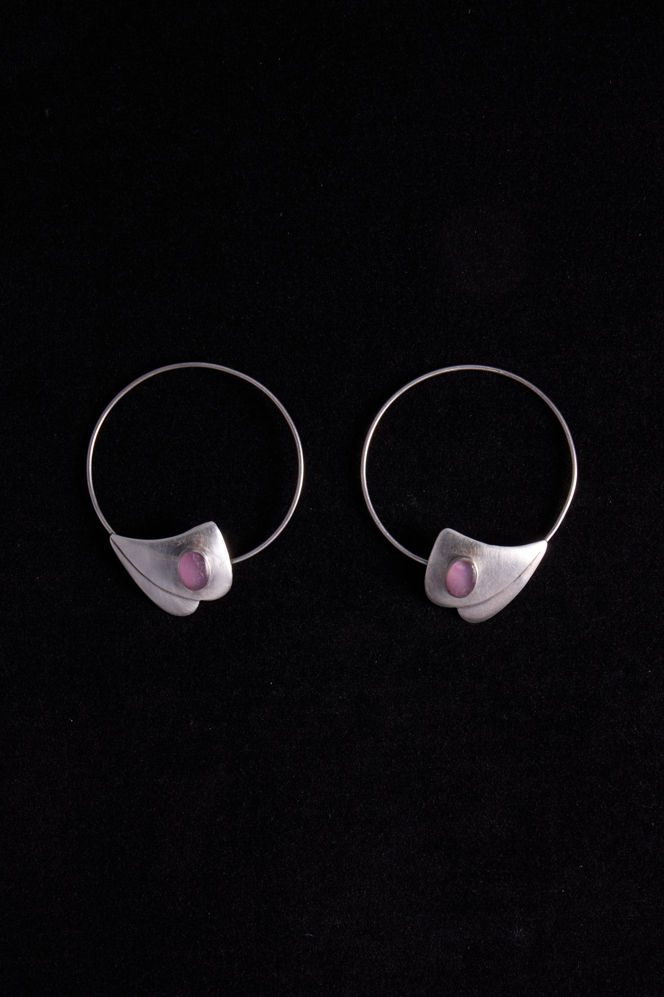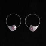 Sterling Silver Hoop Earrings with Purple Cabochon Stone