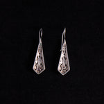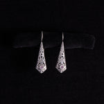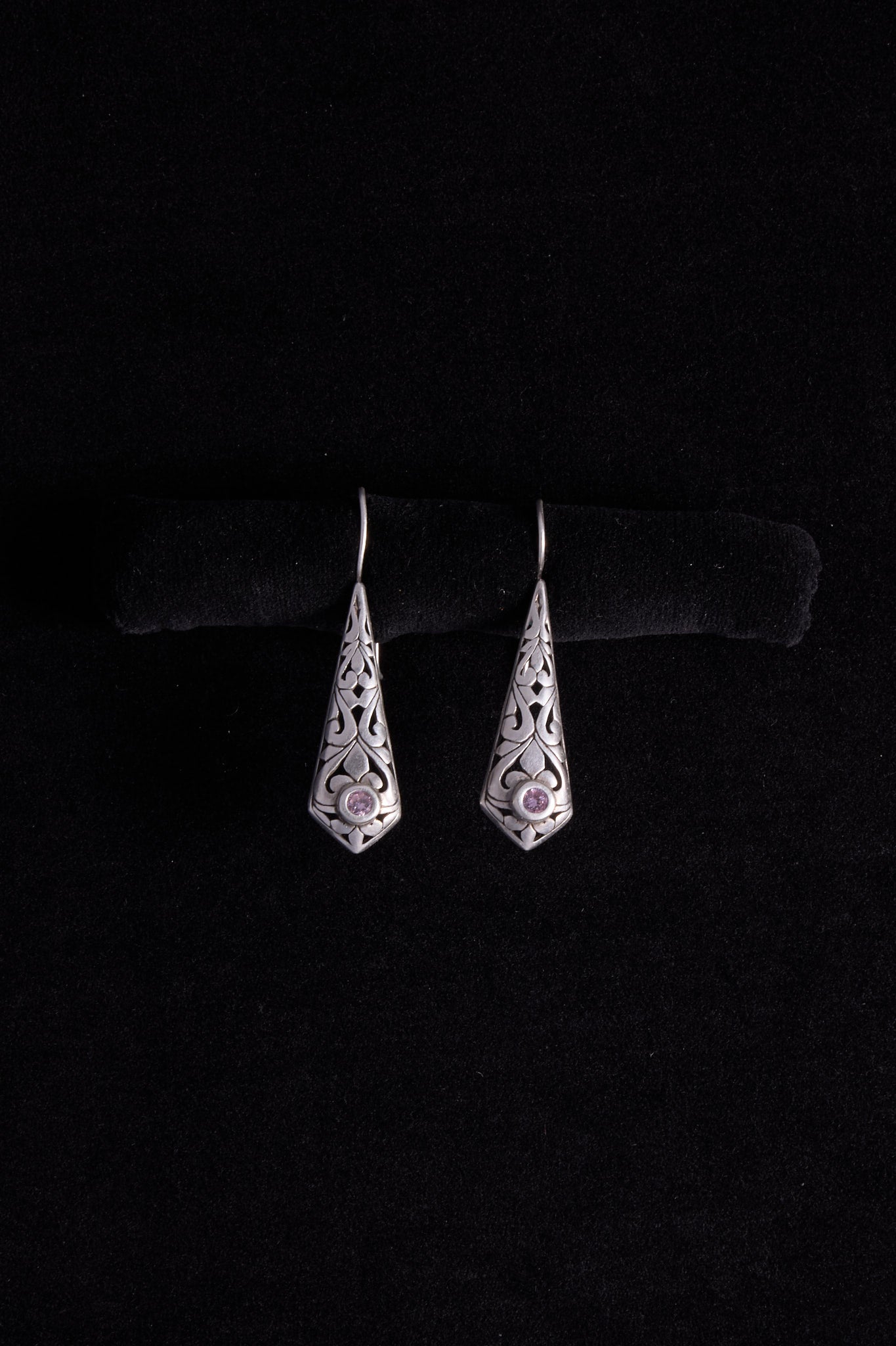 Sterling Silver Long Floral Diamond Shaped Drop Earrings with Pink Stone