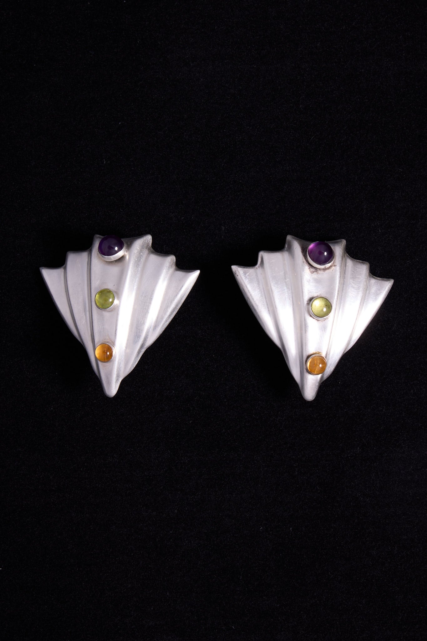 Multistone Silver Sculptural Silver Clip-On Earrings