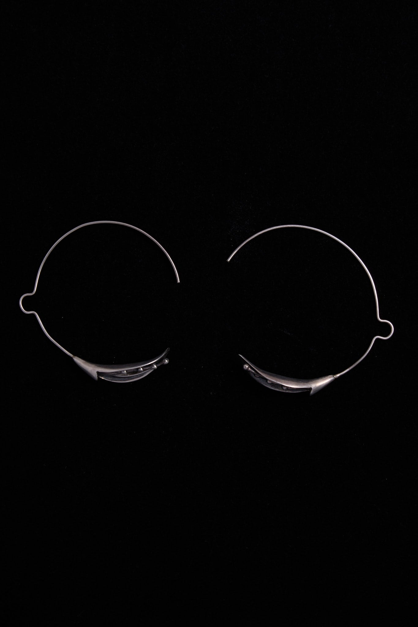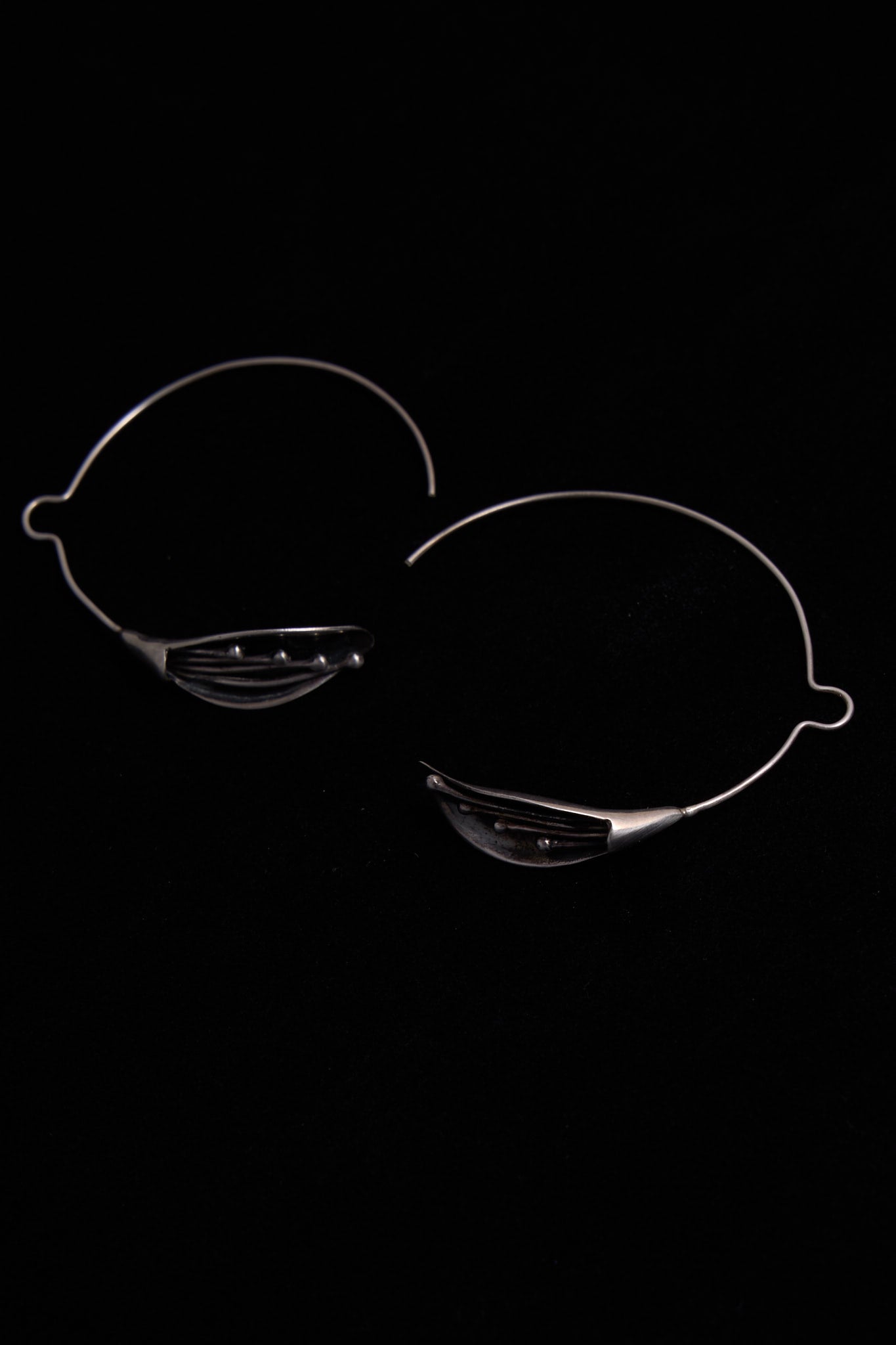 Vintage Sterling Silver Open Hoop Lily Flower Earrings