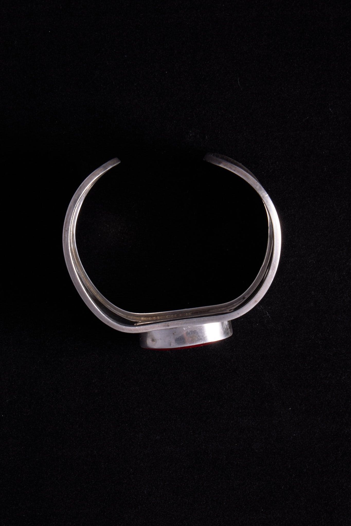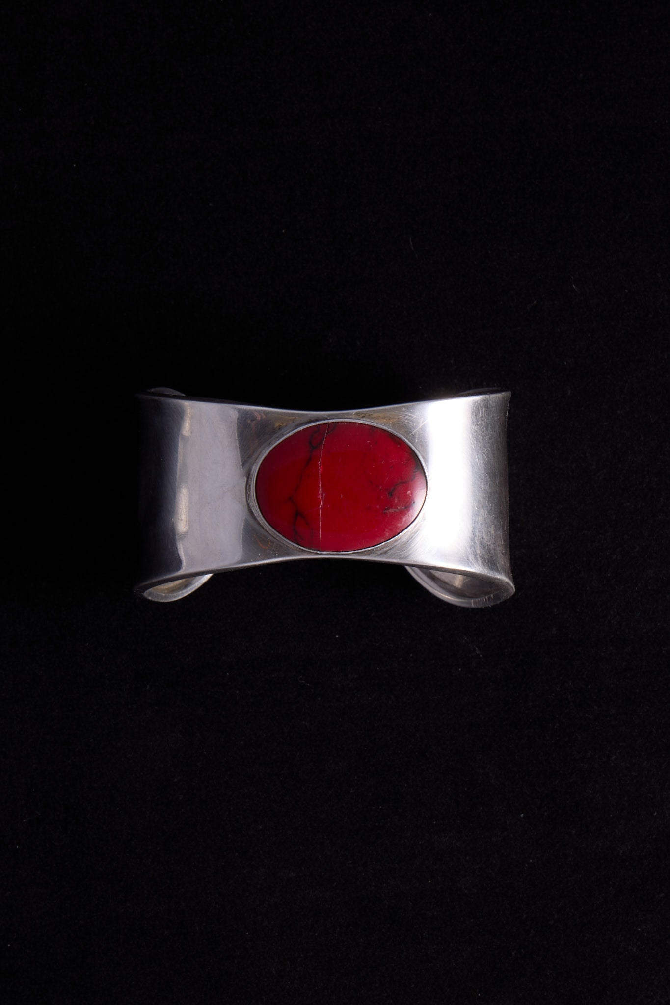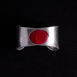 Wide Silver Cuff Bracelet with Red Oval Stone