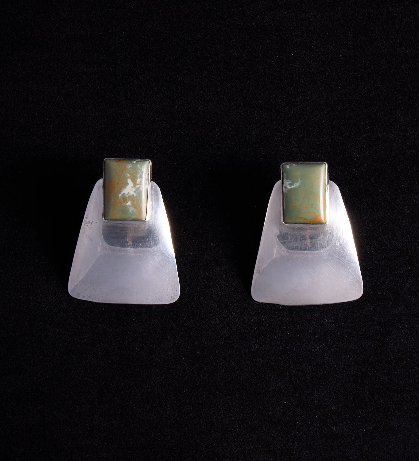 Sterling Silver Large Earrings with Rectangle Green Jasper Stone