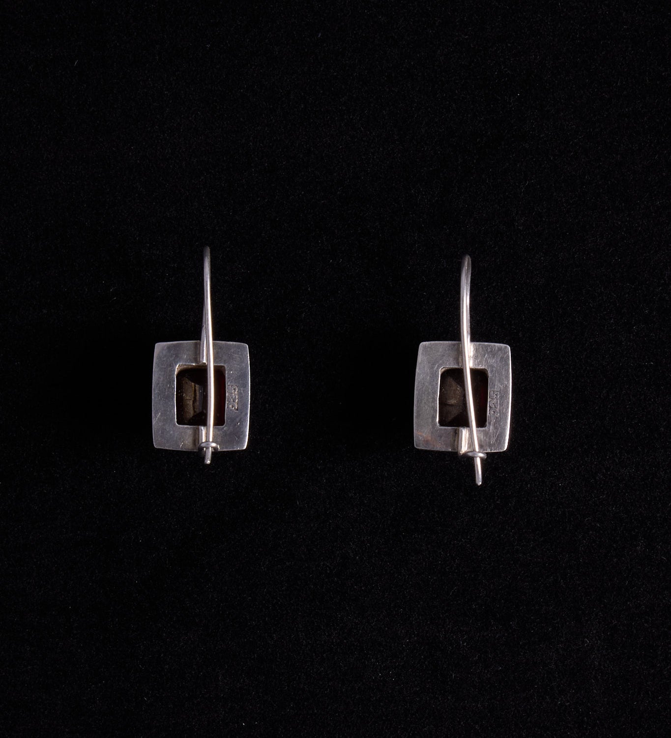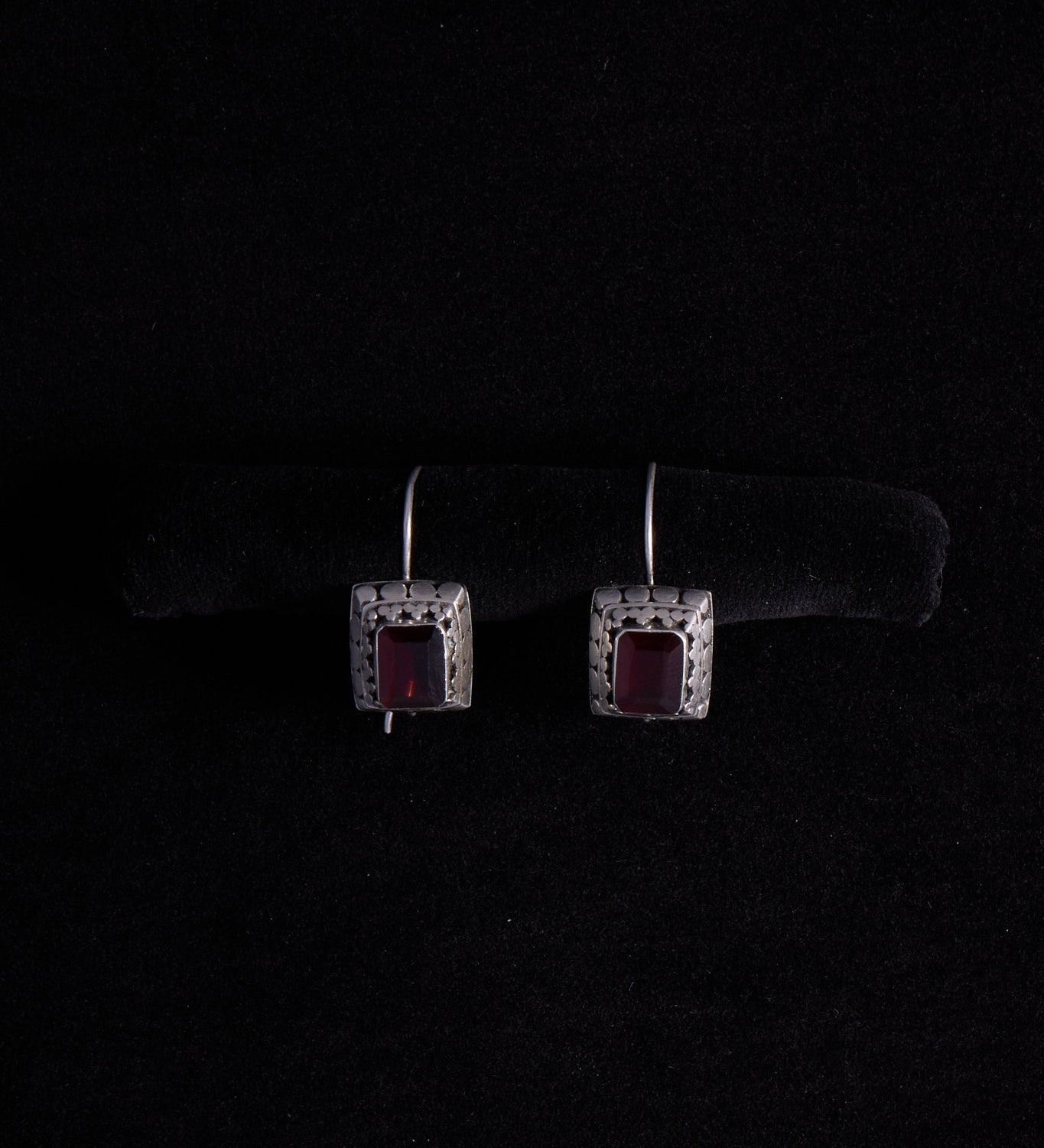 Sterling Silver Square Drop Earrings with Garnet Stone