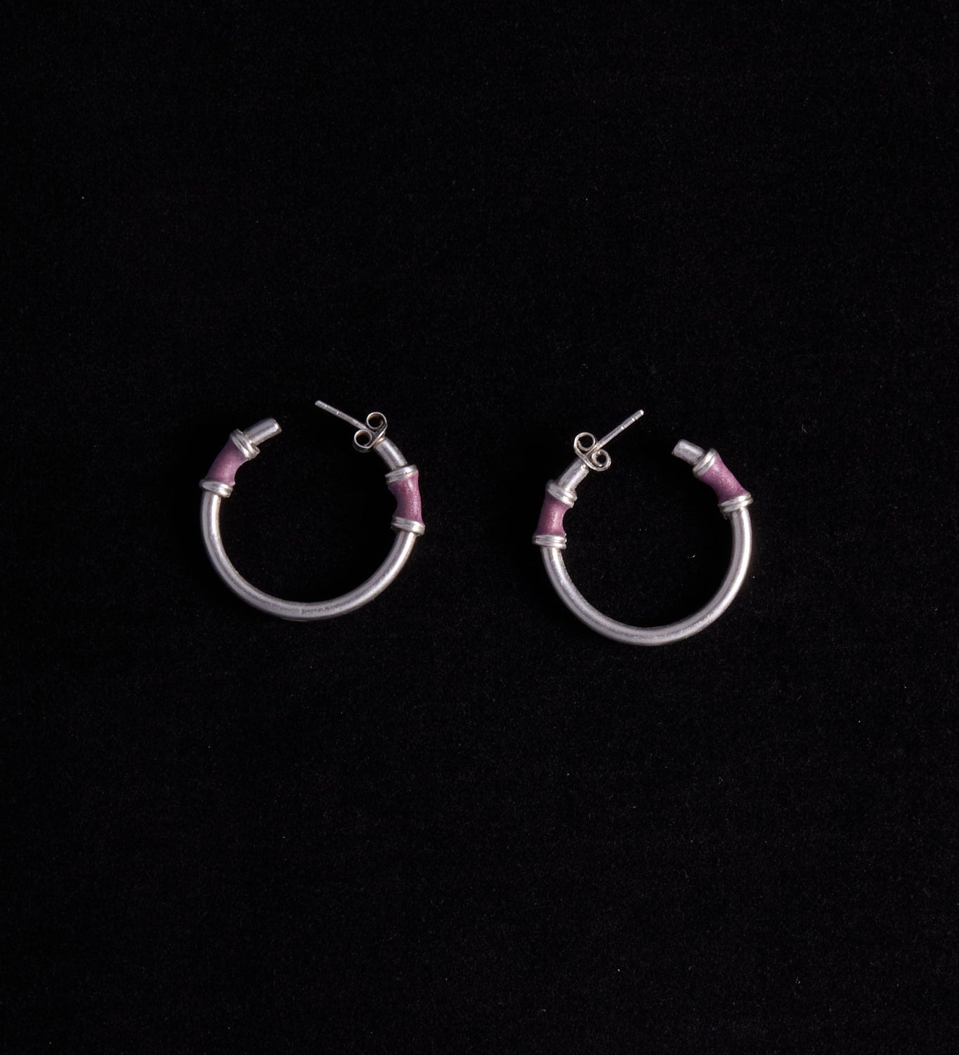 Sterling Silver Purple Bamboo Hoop Earrings