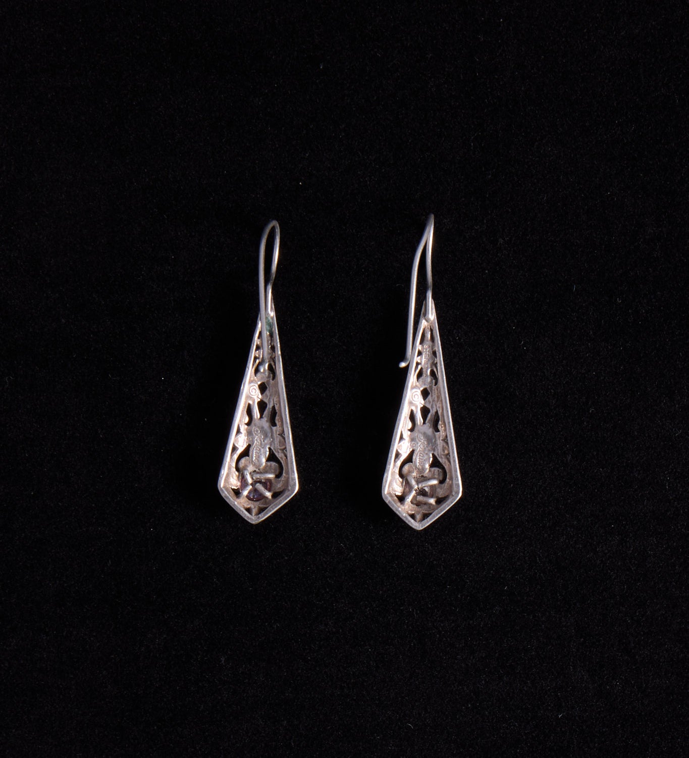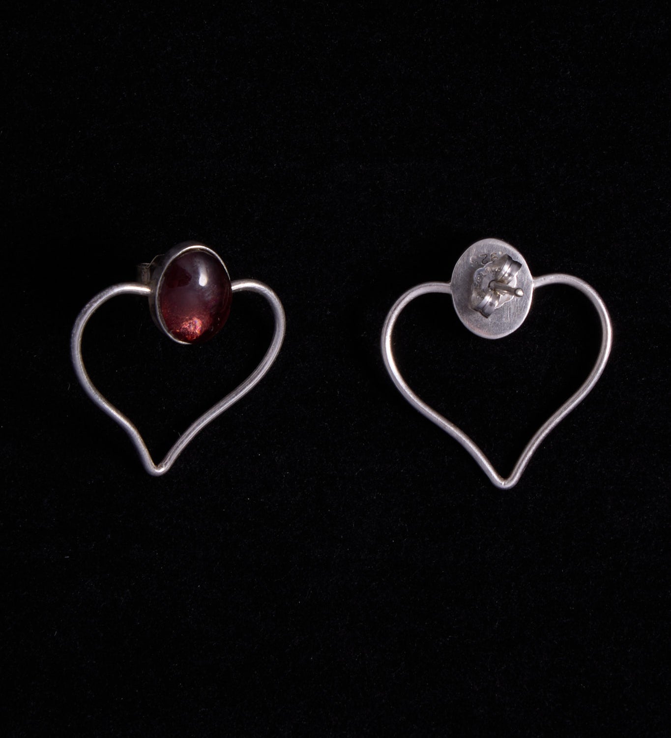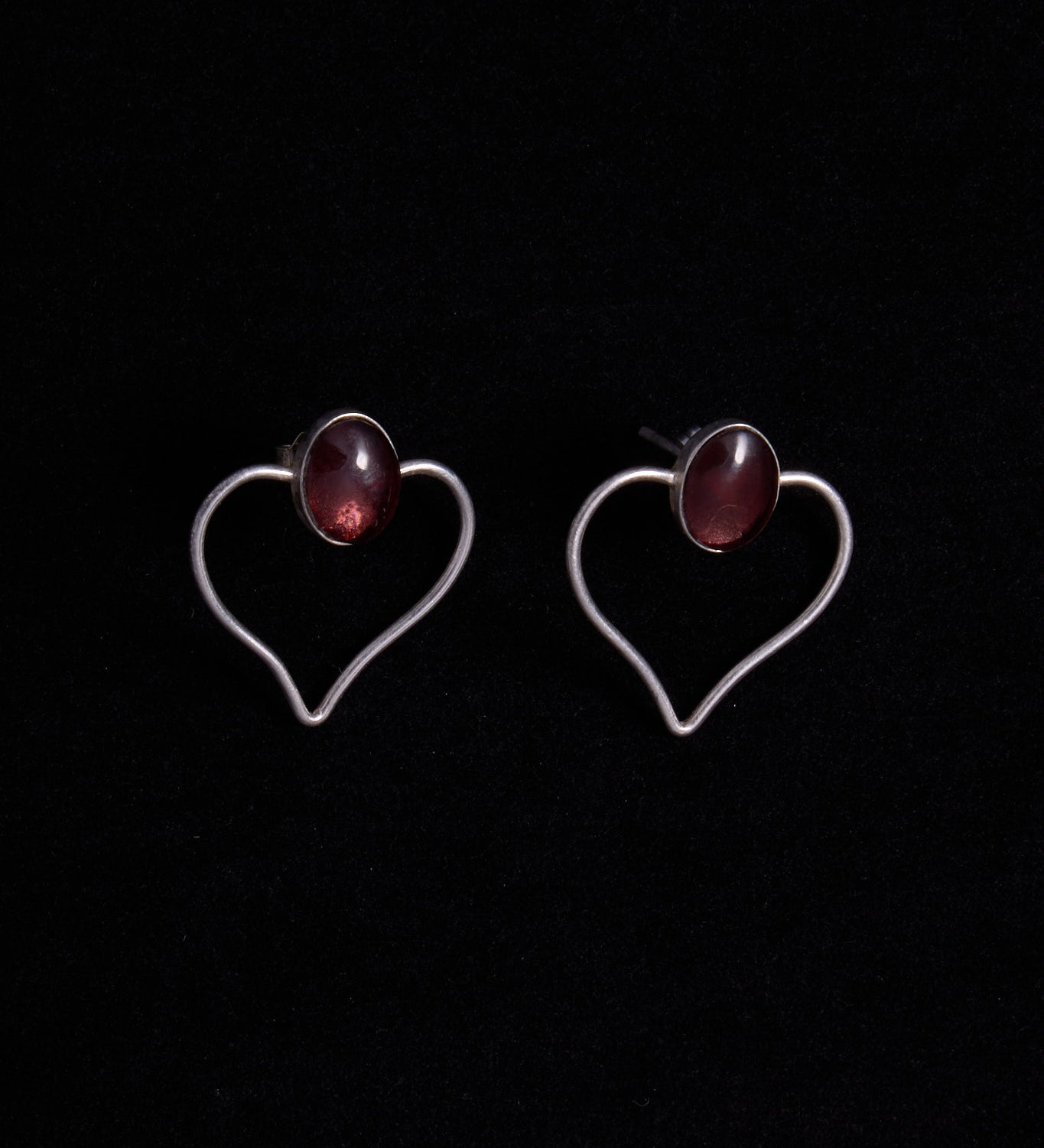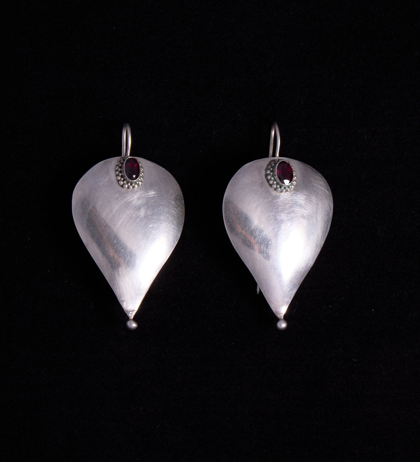 Sculptural Silver Drop Earrings with Garnet