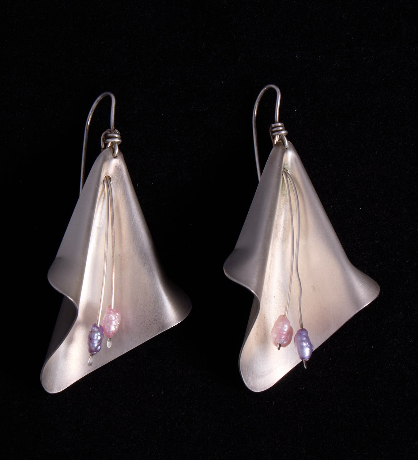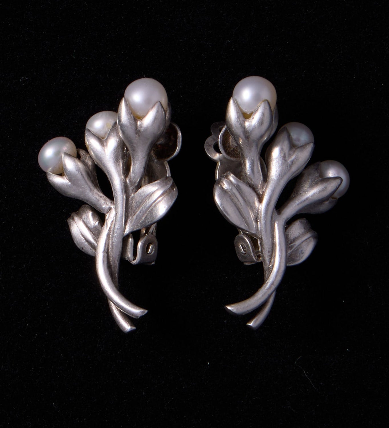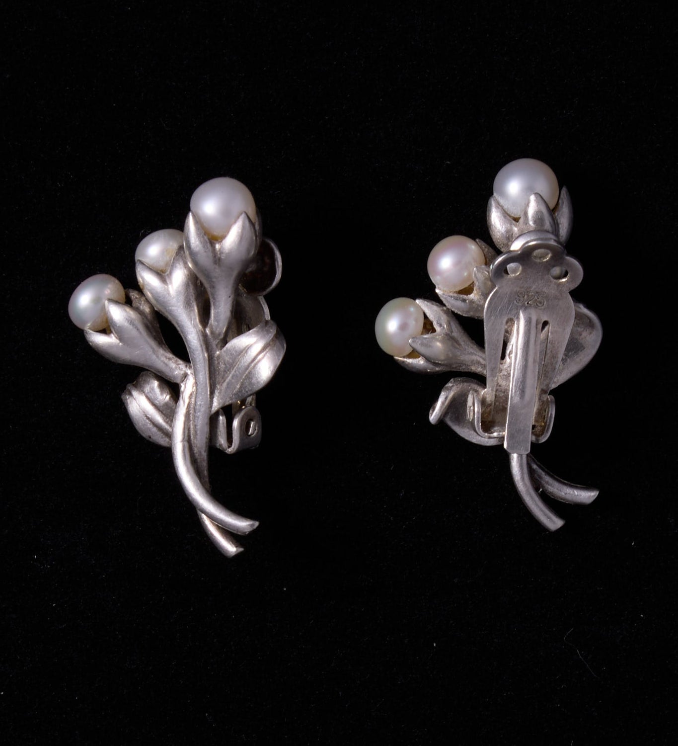 Vintage Sterling Silver Lily Flower with Pearls Earrings