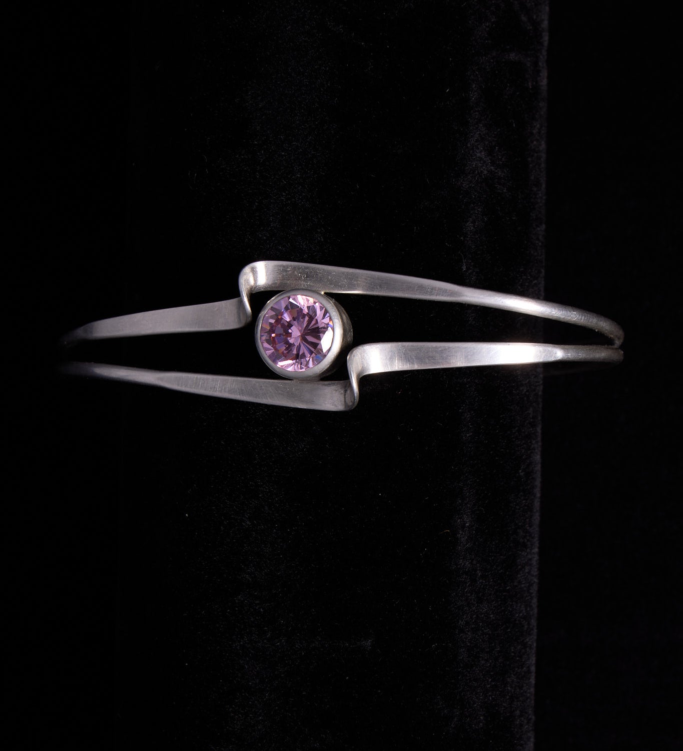 Sterling Silver Pink Gemstone Cuff Bracelet