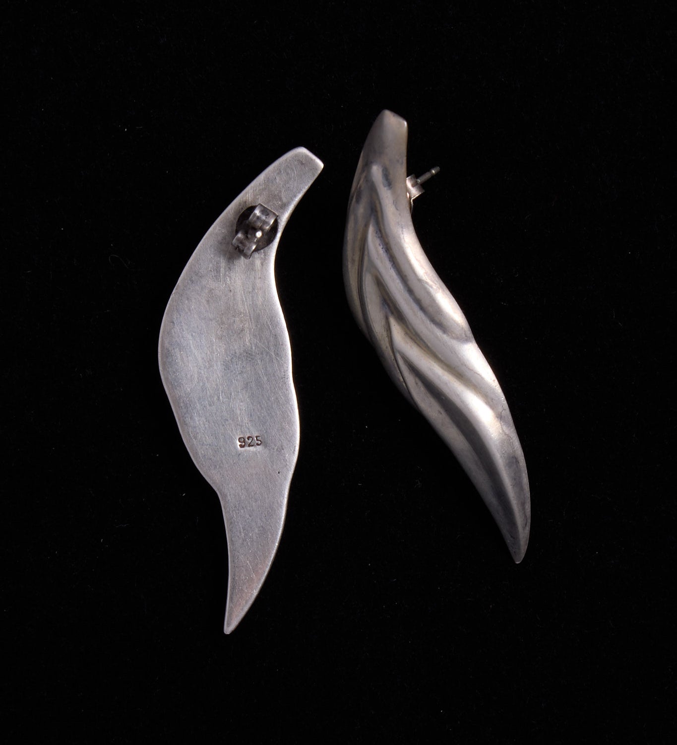 Sterling Silver Wing Feather Shaped Stud Earrings