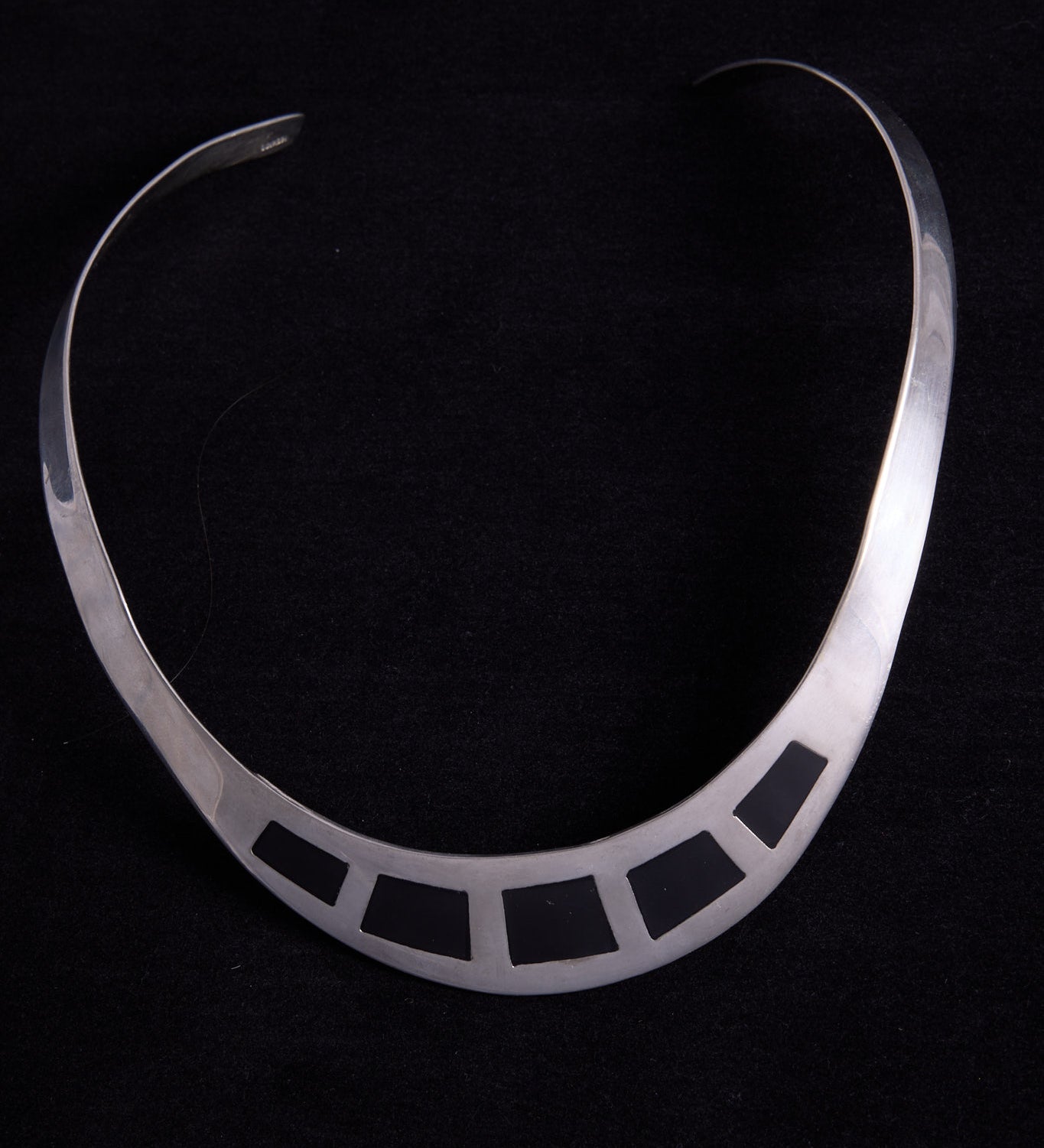 Sterling Silver Minimalist Collar Necklace with Onyx Inlay