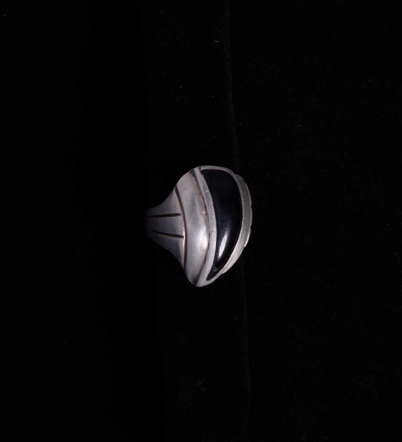 Sterling Silver Black Onyx Modernist Sculptural Ring