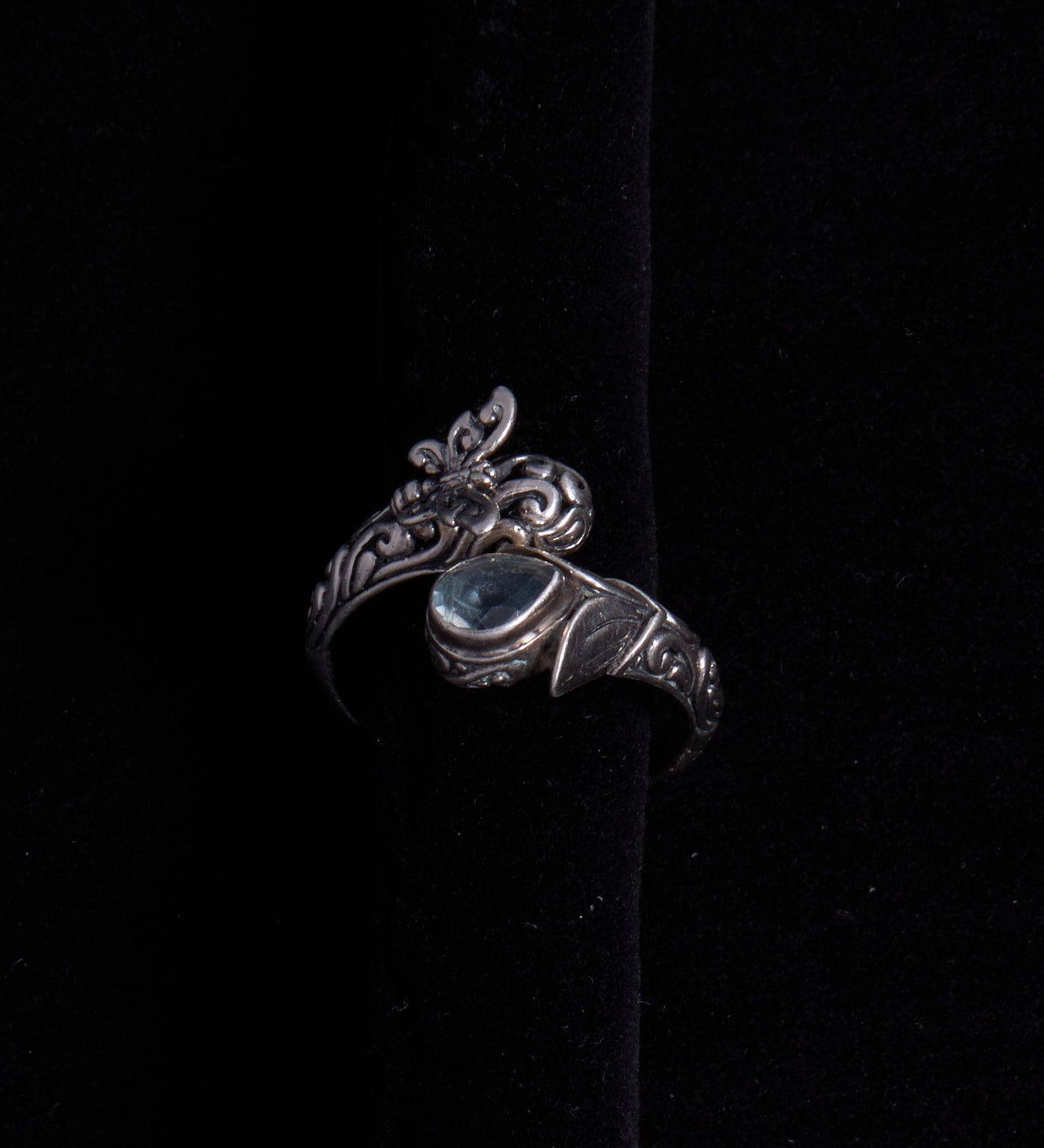 Sterling Silver Silver Ring with Blue Stone and Butterfly