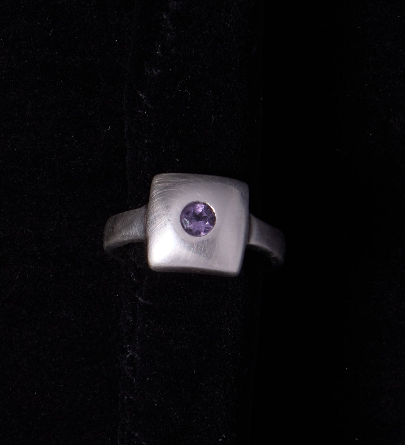 Sterling Silver Modernist Square Amethyst Ring