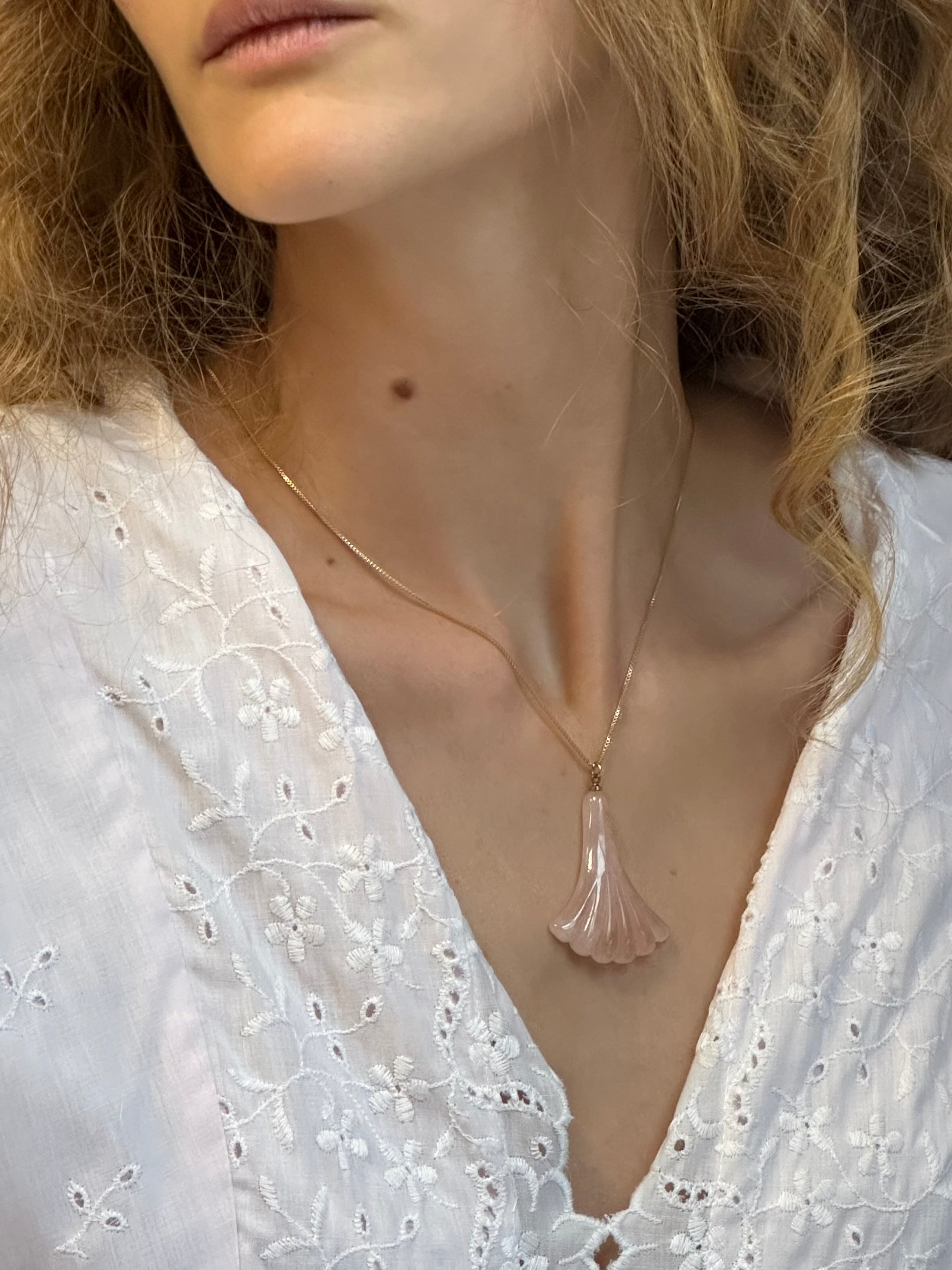 Sterling Silver Gold Plated Necklace with Fan Shaped Stone Pendant