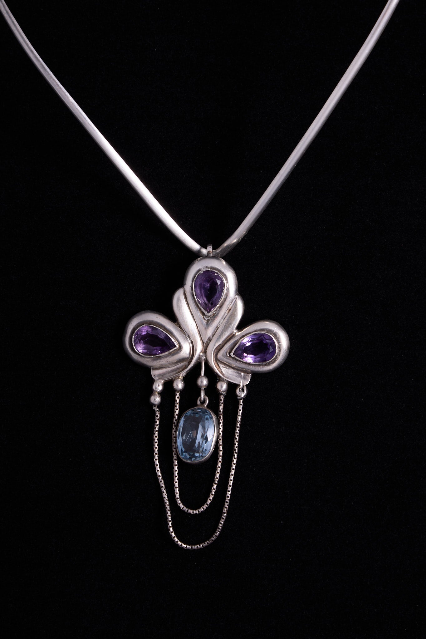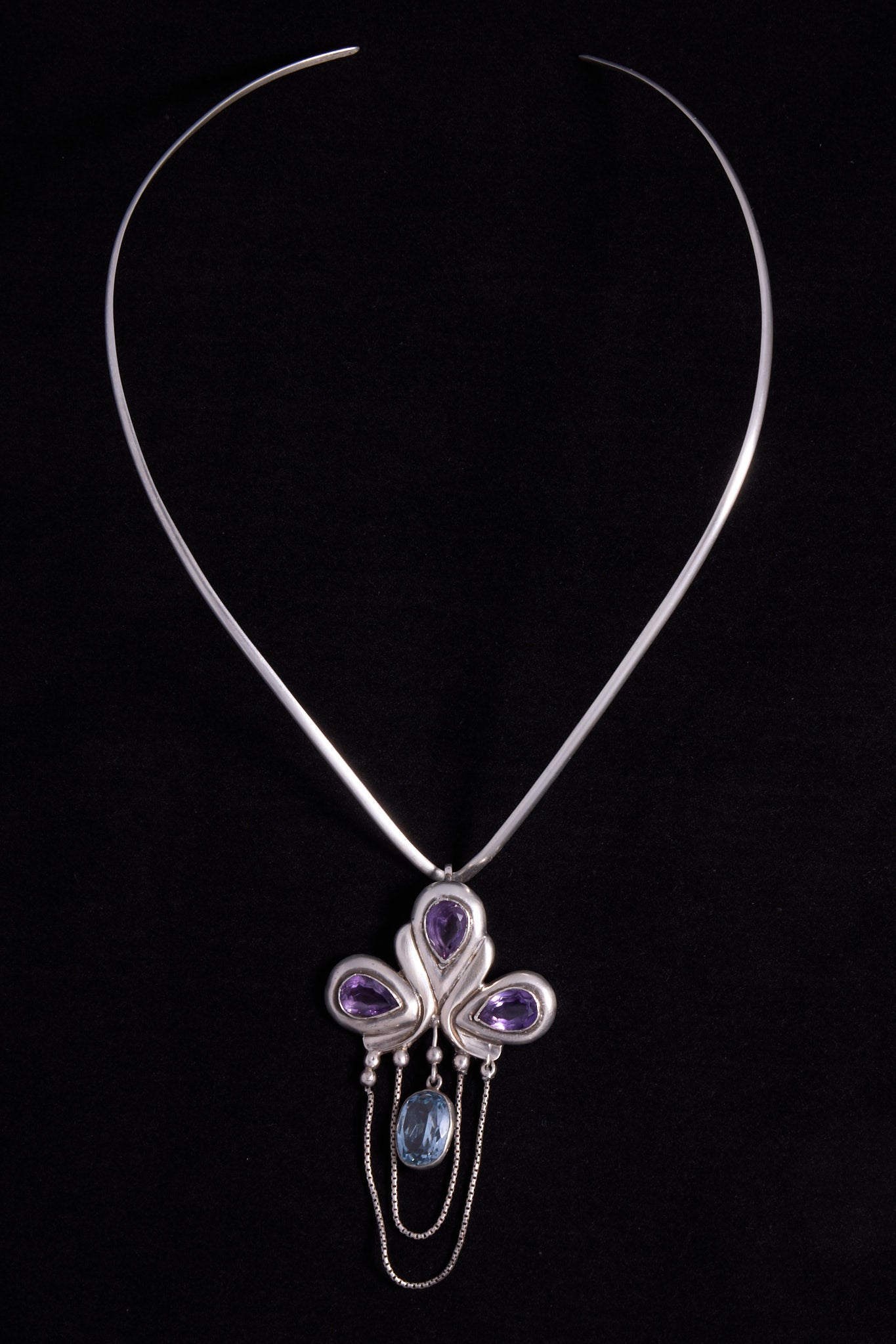 Sterling Silver Collar Necklace with Amethyst & Blue Stone Pendant