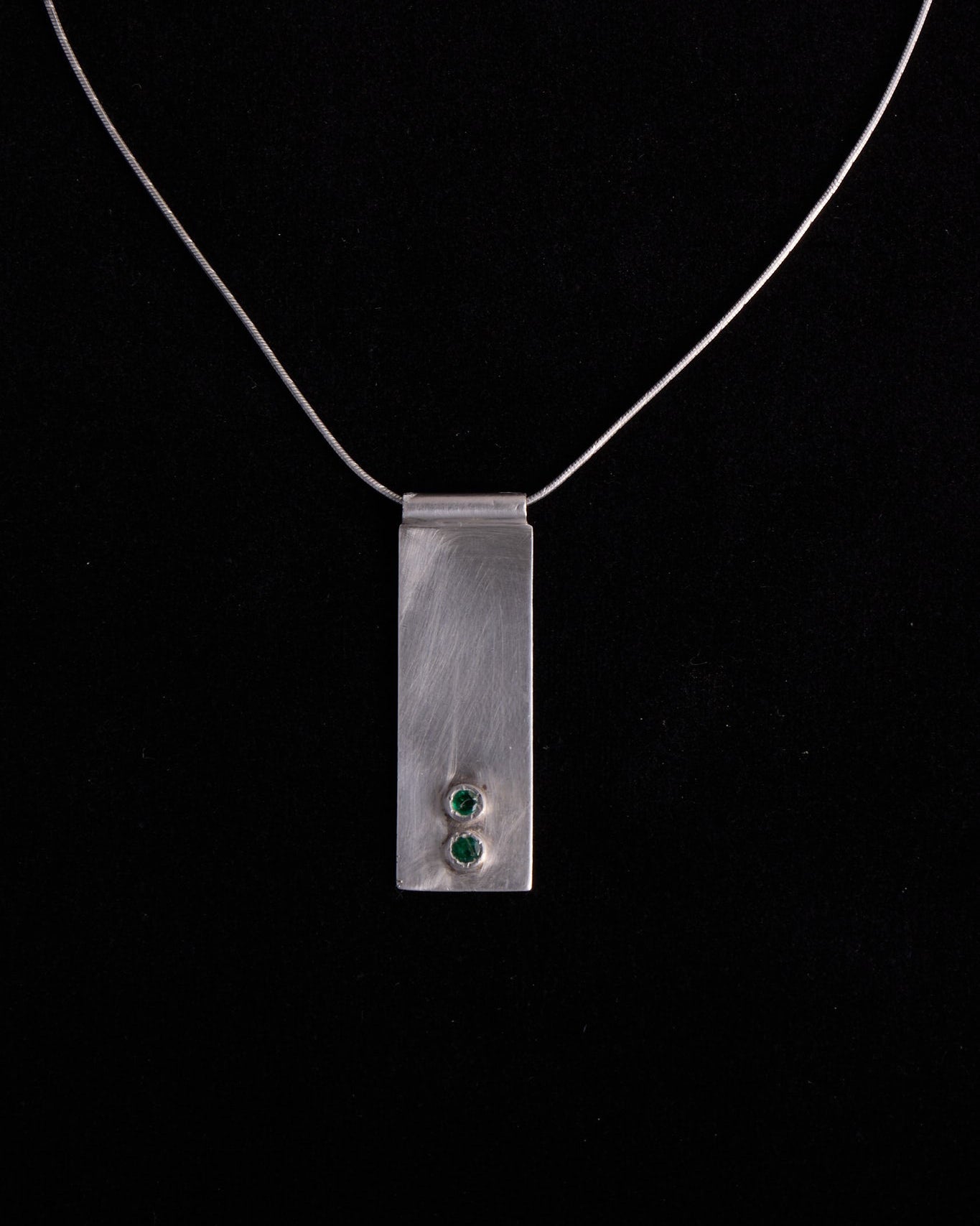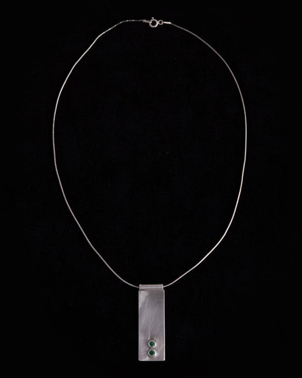 Sterling Silver Modernist Rectangular Pendant Becklace with Green Stones