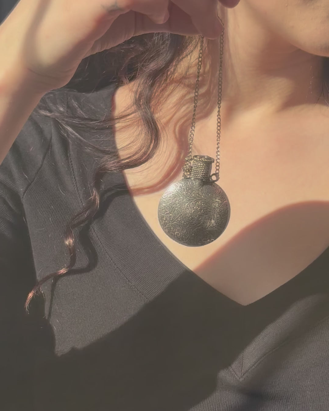 Sterling Silver Engraved Perfume Bottle Pendant Neacklace