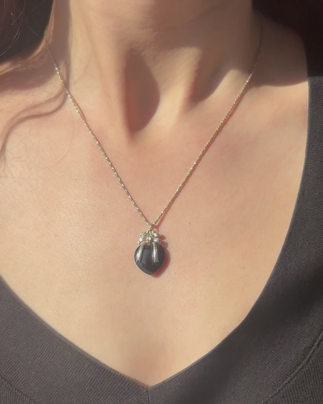 Sterling Silver Necklace with Heart and Bow Pendant
